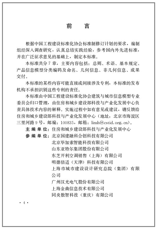 根据中国工程建设标准化协会标准制修订计划要求,编制组经深入调查研究,认真总结实践经验,参考国内外先进标准,并在广泛征求意见的基础上,制定本标准。 本标准共分7章,主要内容包括:总则、术语、基本规定、产品信息模型分类编码及命名、几何信息、非几何信息、成果交付。 为规范建筑电气智能化产品信息模型的技术要求,制定本标准。 本标准适用于民用建筑与工业建筑电气智能化产品信息模型的建立及交付。 建筑电气智能化产品信息模型的建立及交付,除应符合本标准规定外,尚应符合国家现行有关标准和现行中国工程建设标准化协会有关标准的规定。