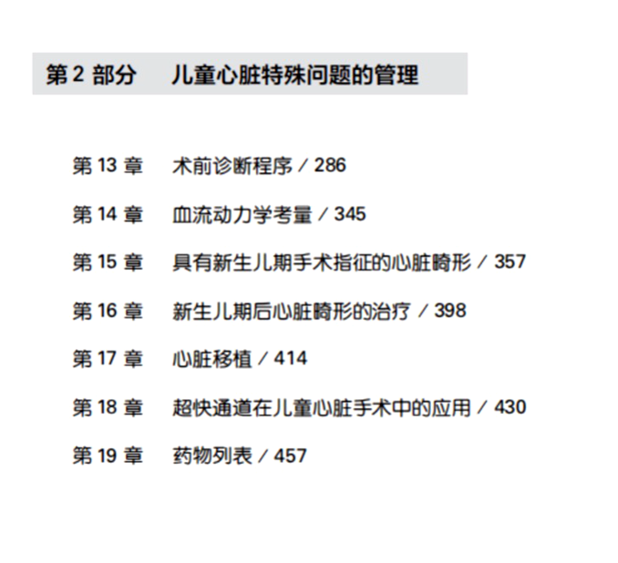 与国内同道分享国际知名儿童心脏中心的临床经验,促进更多心脏外科医生强化儿童心脏疾病的重症监护管理,全面提升患者的预后和生存质量。正是本书翻译团队——深圳市儿童医院心脏外科专家——翻译出版此书的初衷。