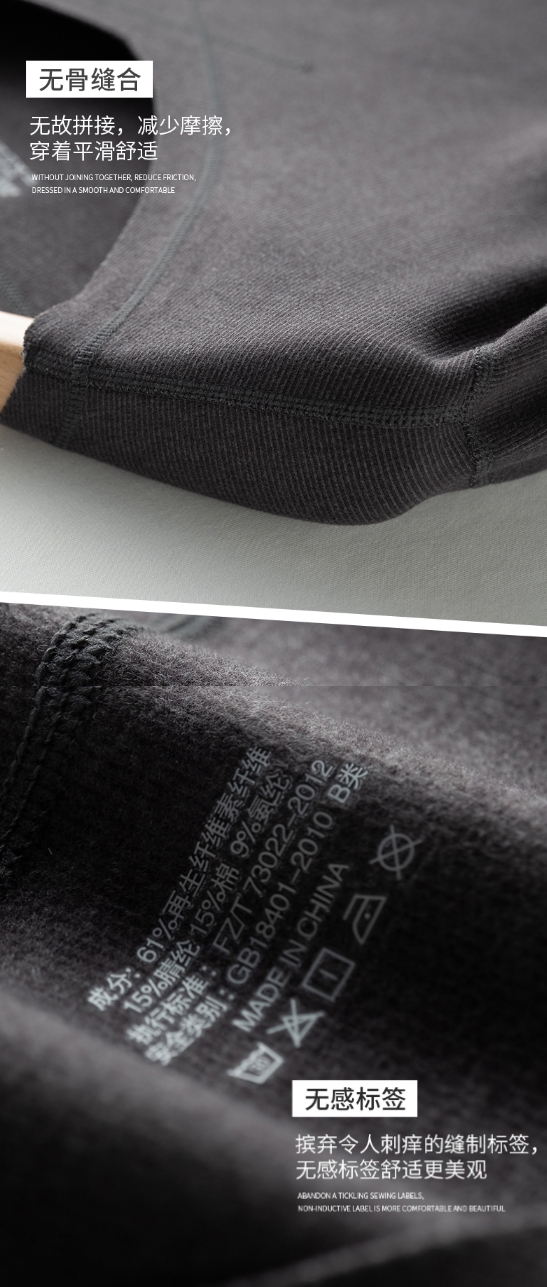 通身四针六线无痕随心裁工艺, 可以根据自身需求整改衣长裤长,不卷边不散边,穿洗不变形,弹力非常非常大!不挑身材,有啤酒肚的放心买买买,胖瘦无压力~