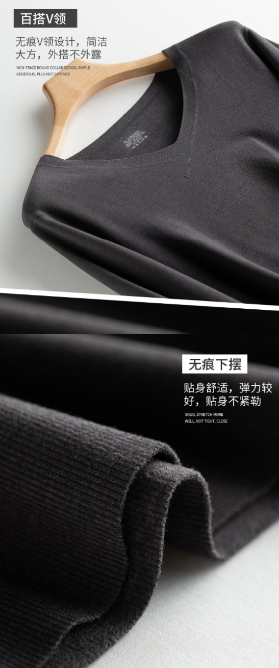 【1028德绒保暖衣】男竖条德绒V领套装,男士双面磨毛德绒套装,会无限回购的御寒神器!(付款7天左右发货)