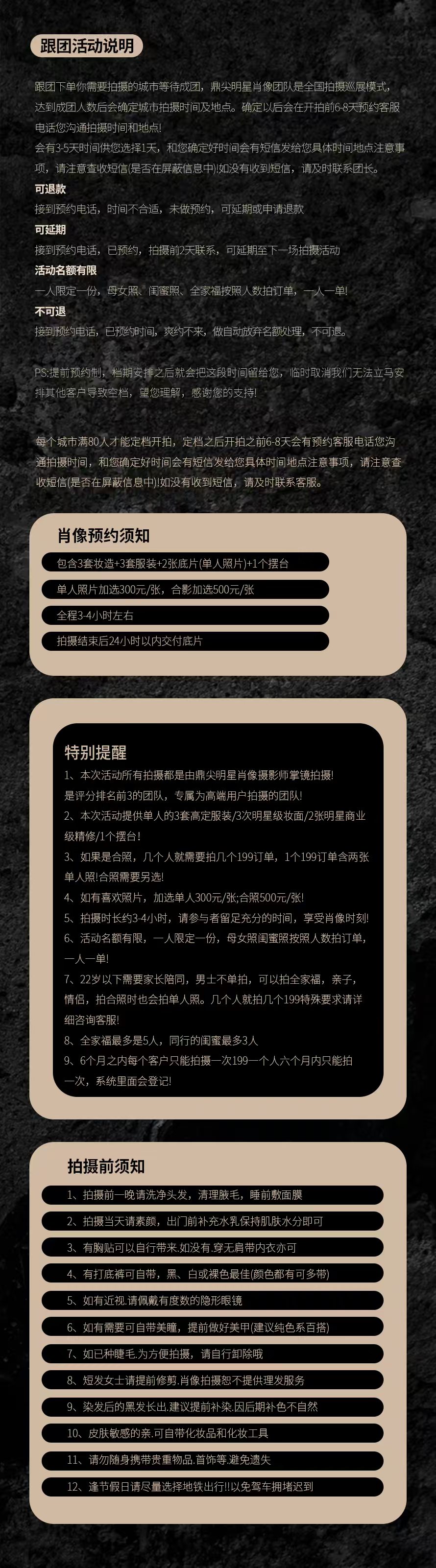 3.如果是合照,几个人就需要拍几个199💰订单,1个199💰订单含两张单人照!合照需要另选!