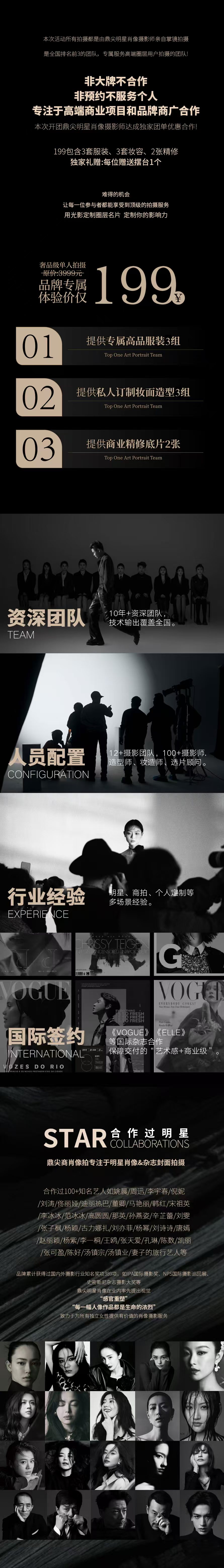 2.本次活动提供单人的3套高定服装/3次明星级妆面/2张明星商业级精修!