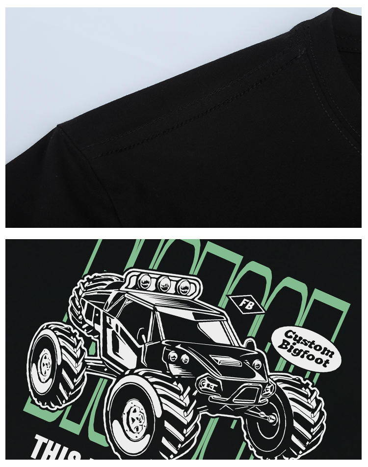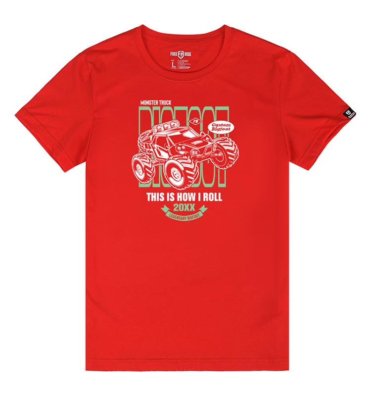 自由基地男装大脚怪越野车图案印花全棉短袖T恤户外休闲半袖队服 NMT-1881