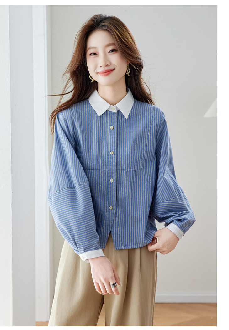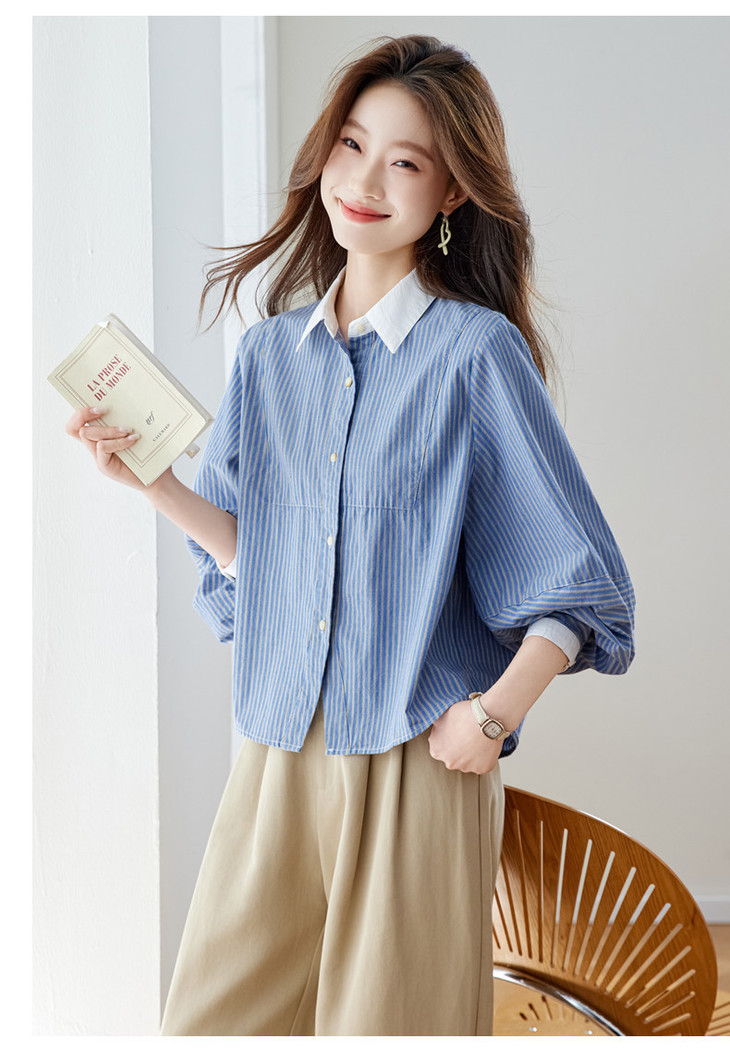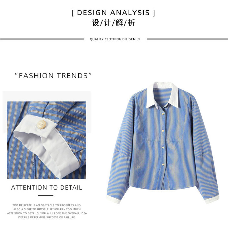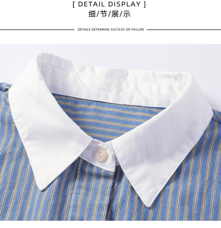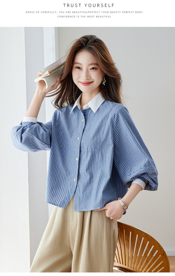 高级感撞色翻领蓝白条纹衬衫,宽松气质叠穿通勤穿搭上衣CC-QL-6228