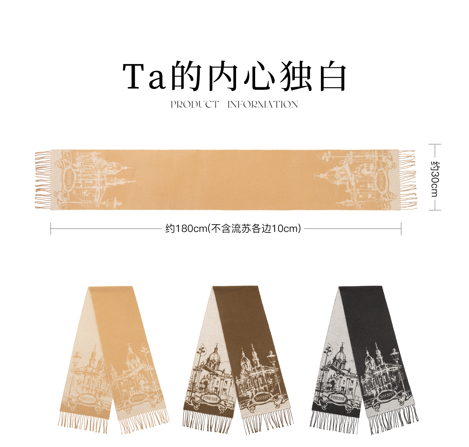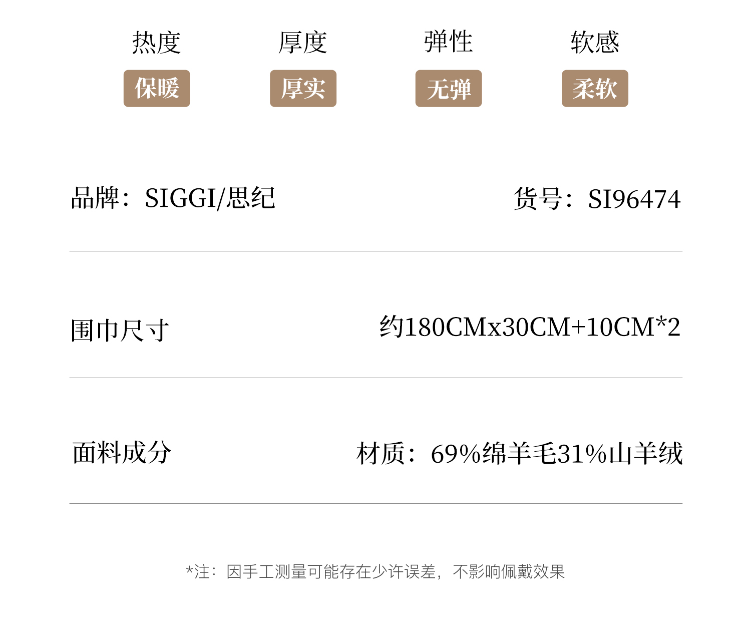 siggi 古典羊绒流苏围巾