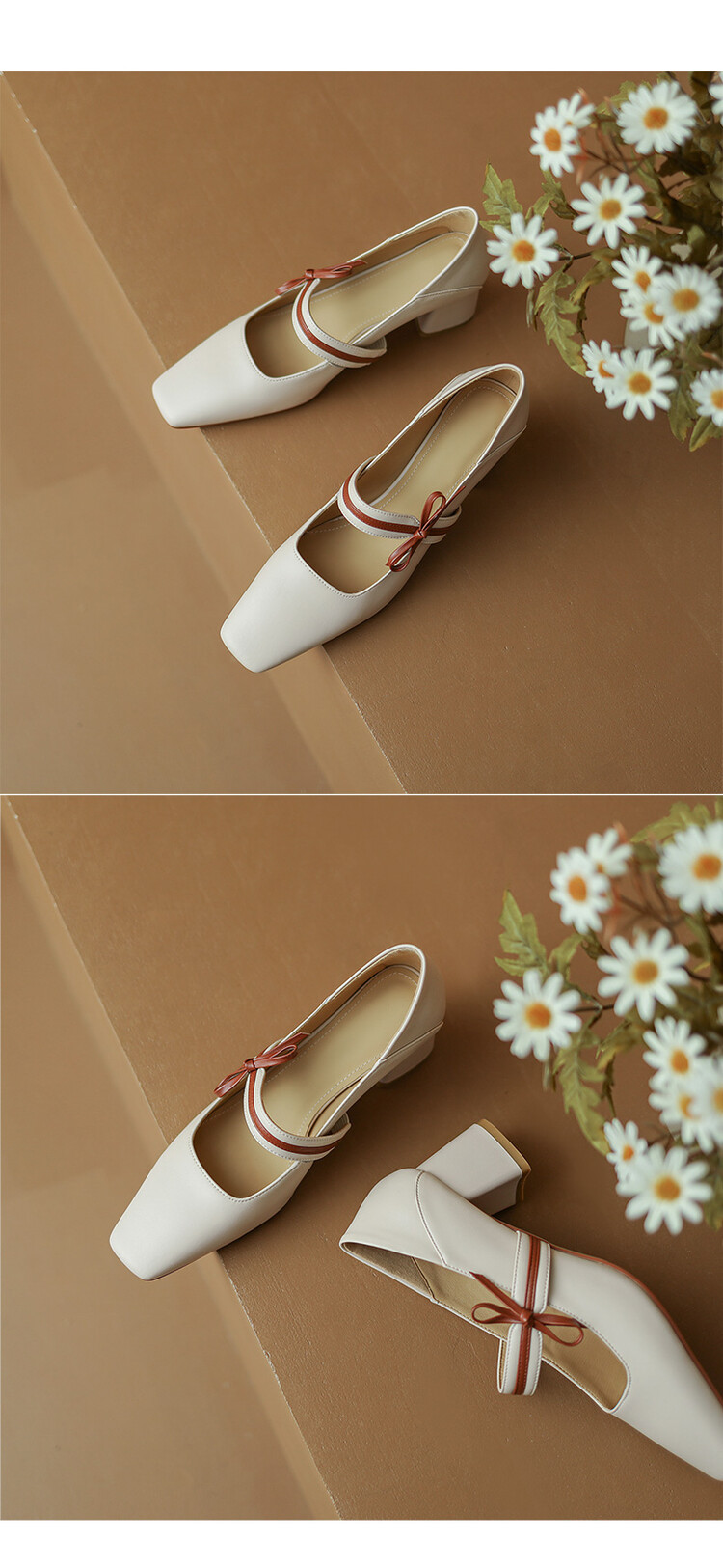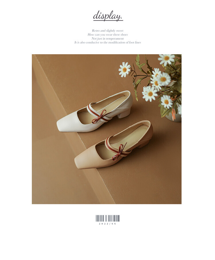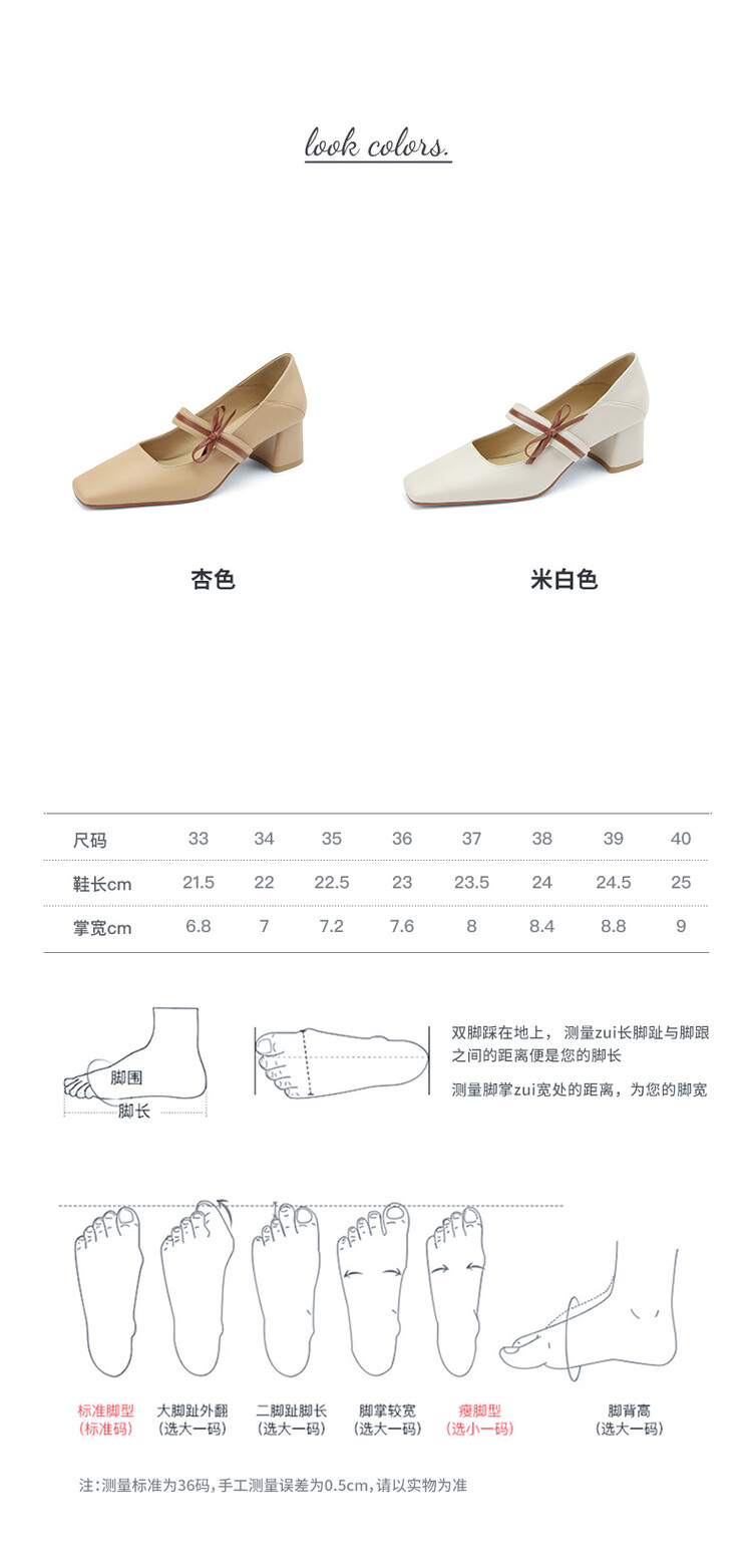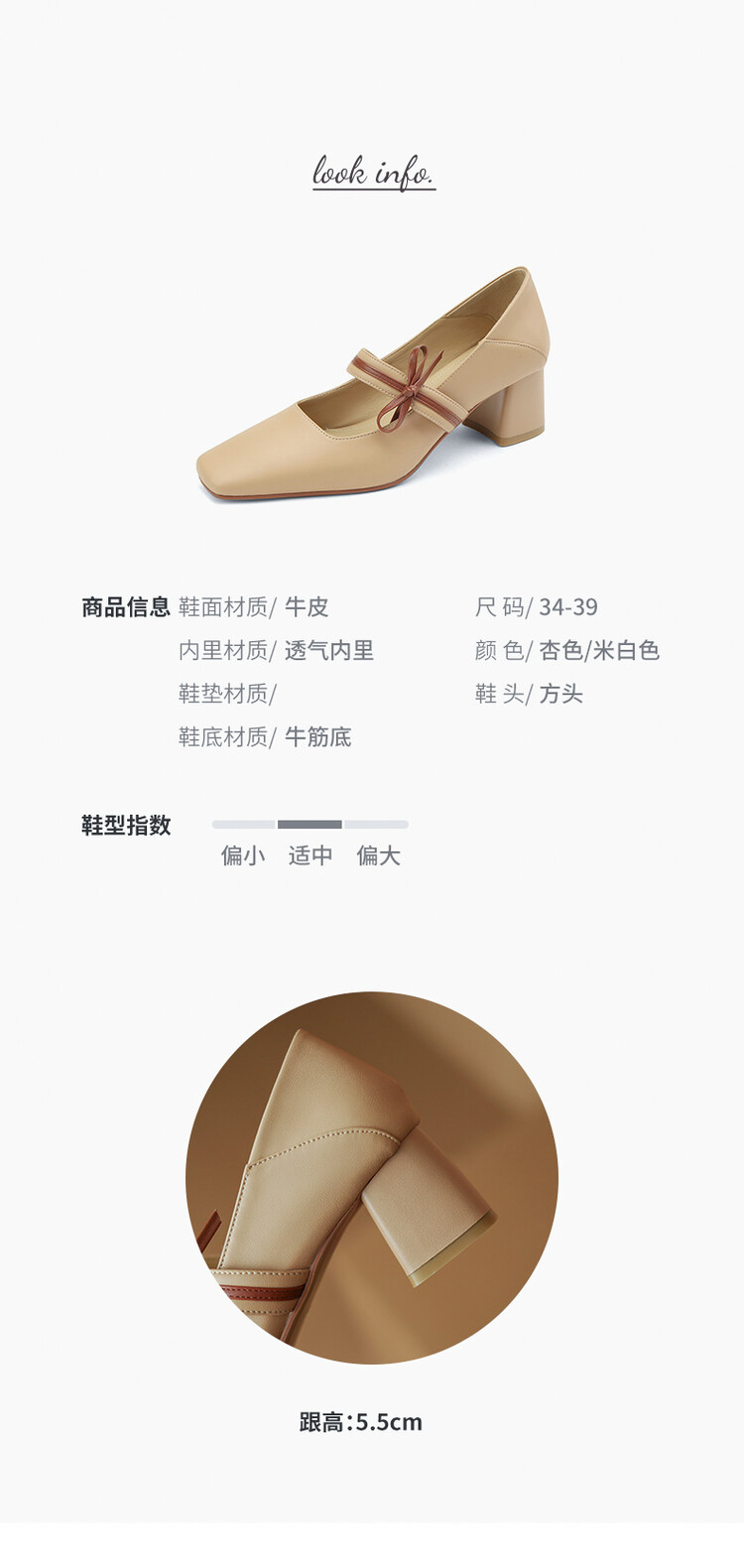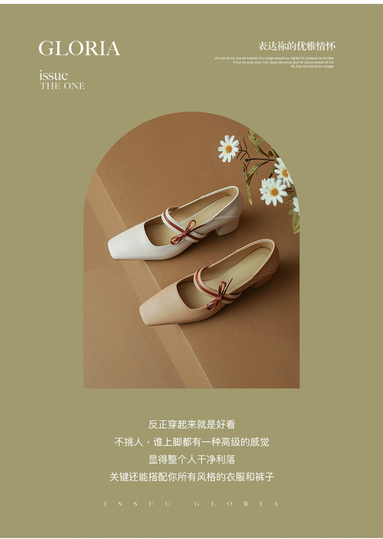 韩版仙女蝴蝶结玛丽珍鞋,牛皮粗中跟单鞋 WC-M9768