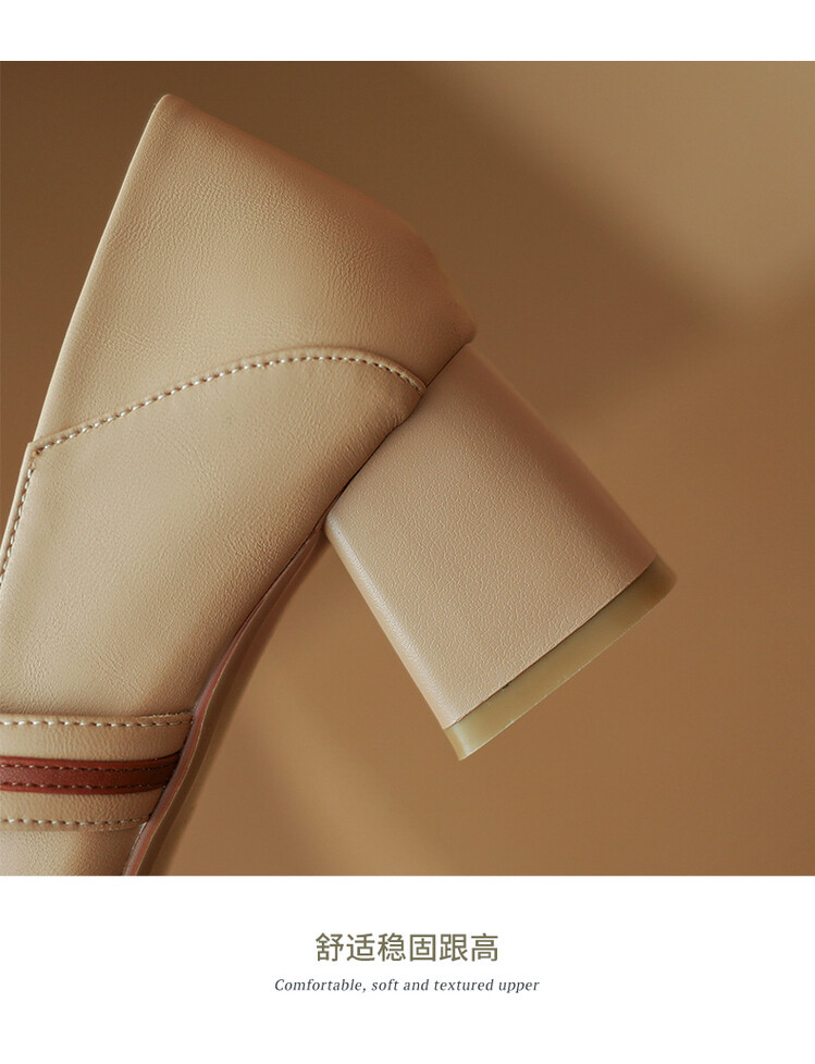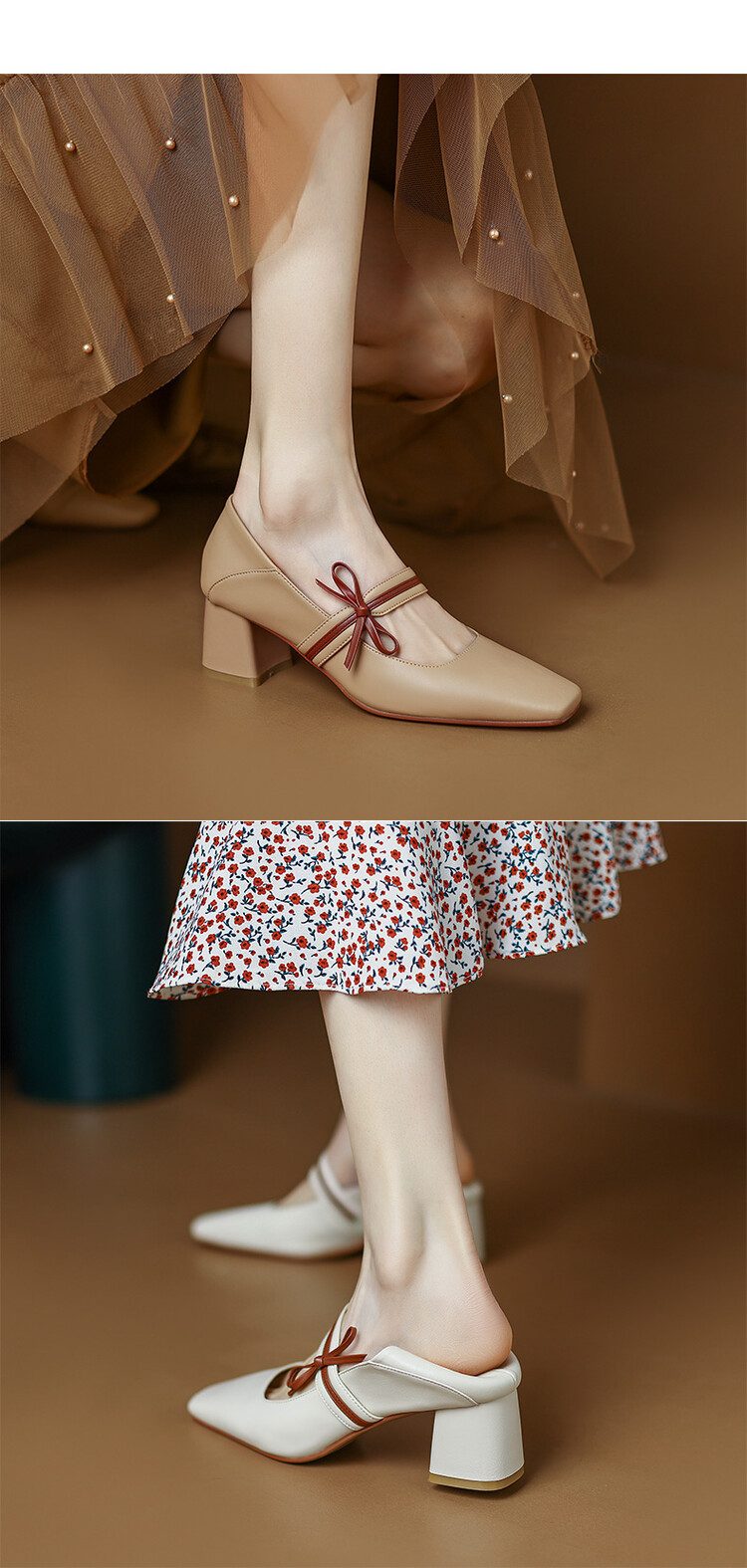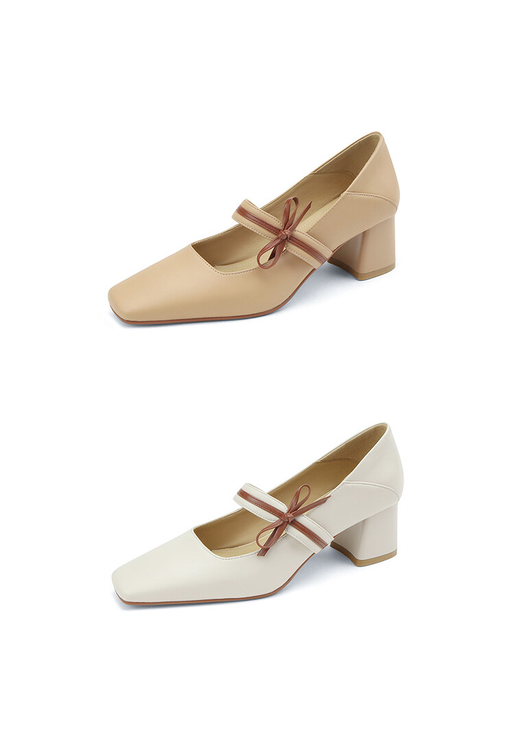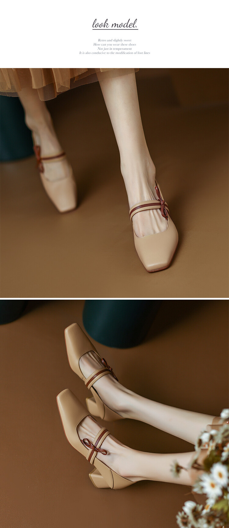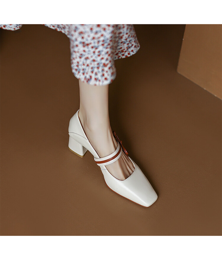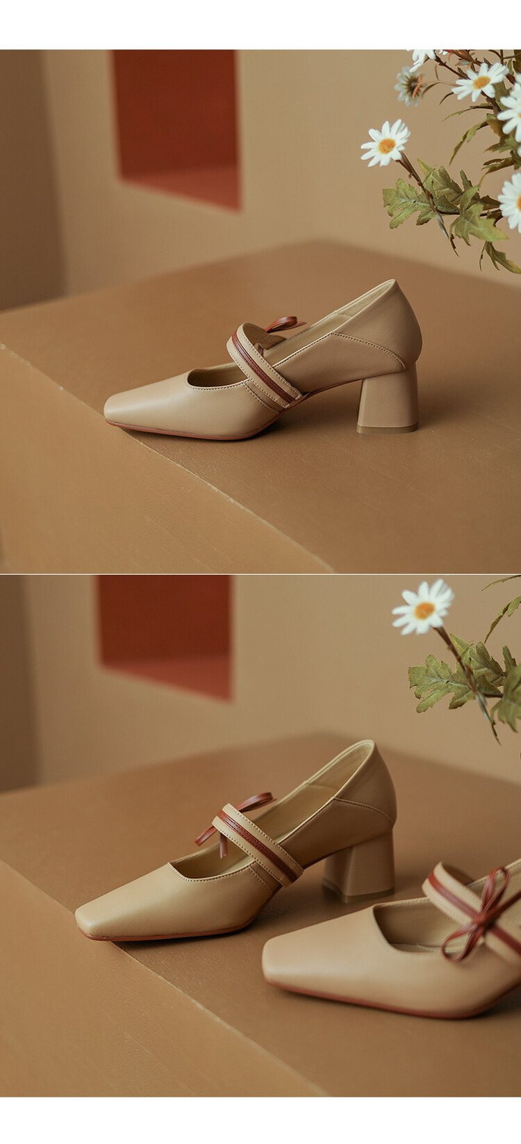 韩版仙女蝴蝶结玛丽珍鞋,牛皮粗中跟单鞋 WC-M9768