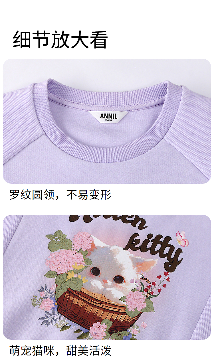 【实体店同款】女童圆领卫衣秋季新款安奈儿童装AG531304