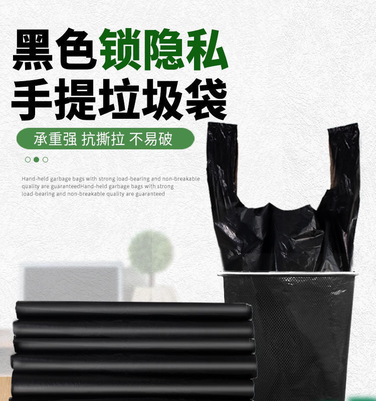 【超牛的承重能力,居家垃圾随意装】黑色垃圾袋家用,加厚手提背心式中大号,厨房一次性垃圾袋塑料袋
