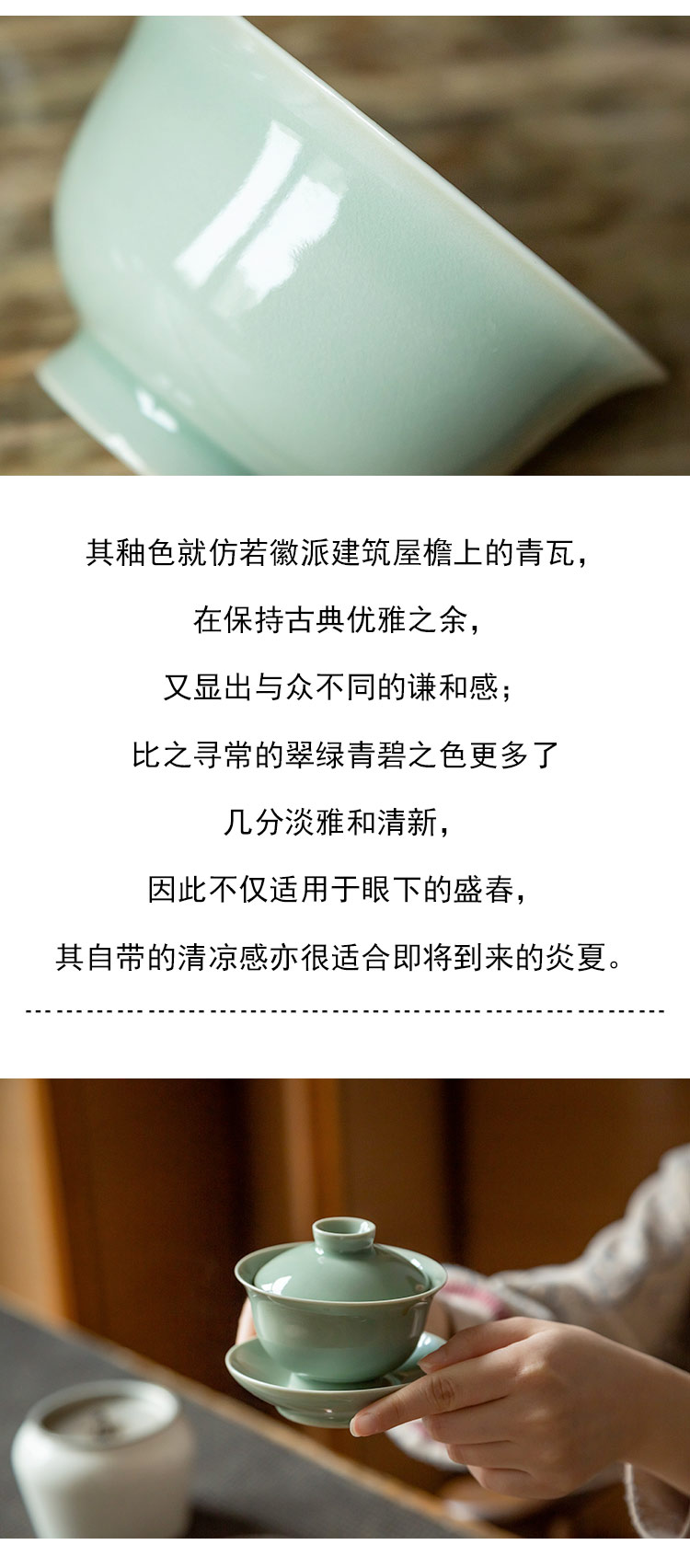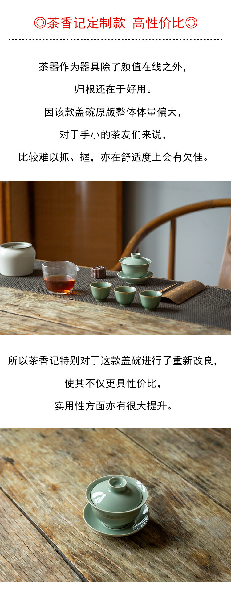 茶香记 灰绿釉三才小盖碗 蕉月盖碗 柔和 高性价比 茶道工具 适手 好用