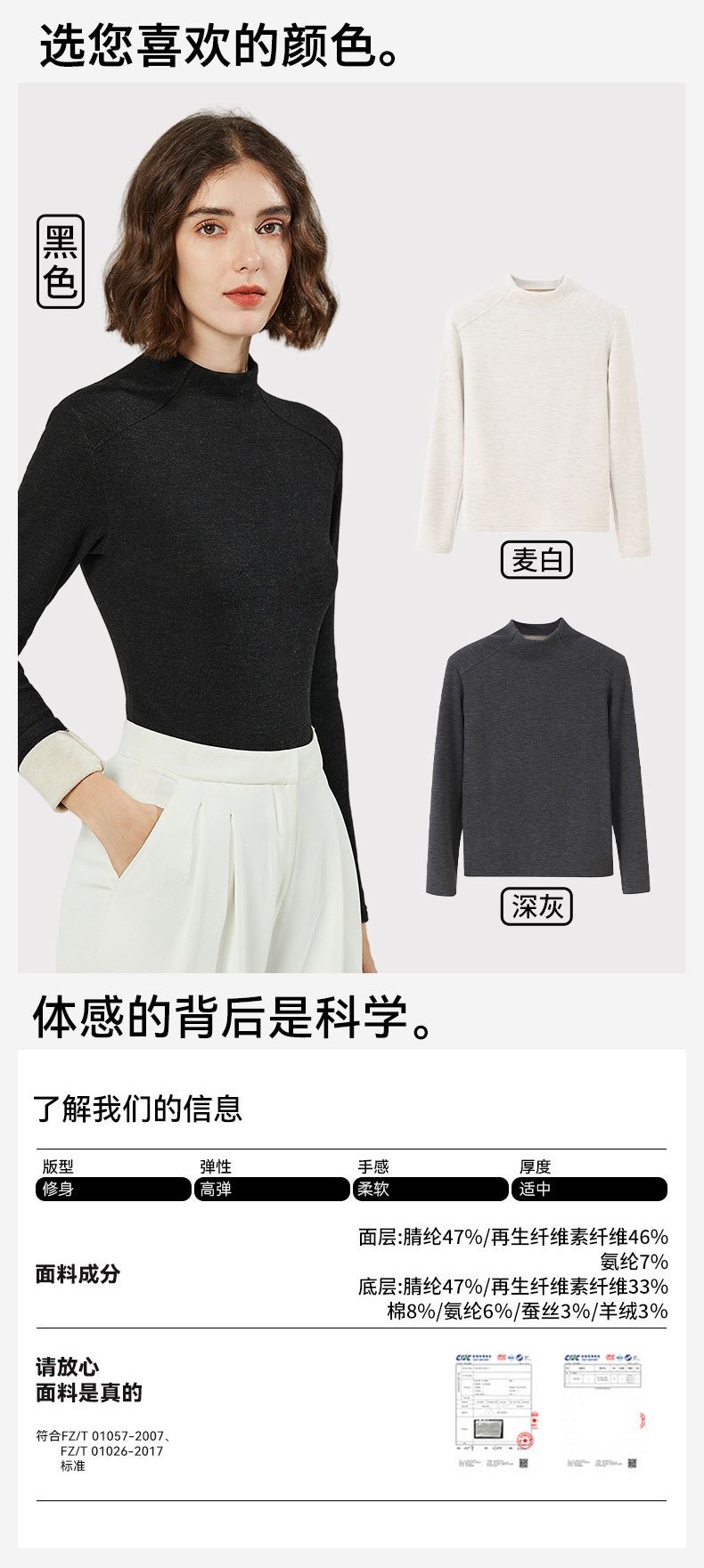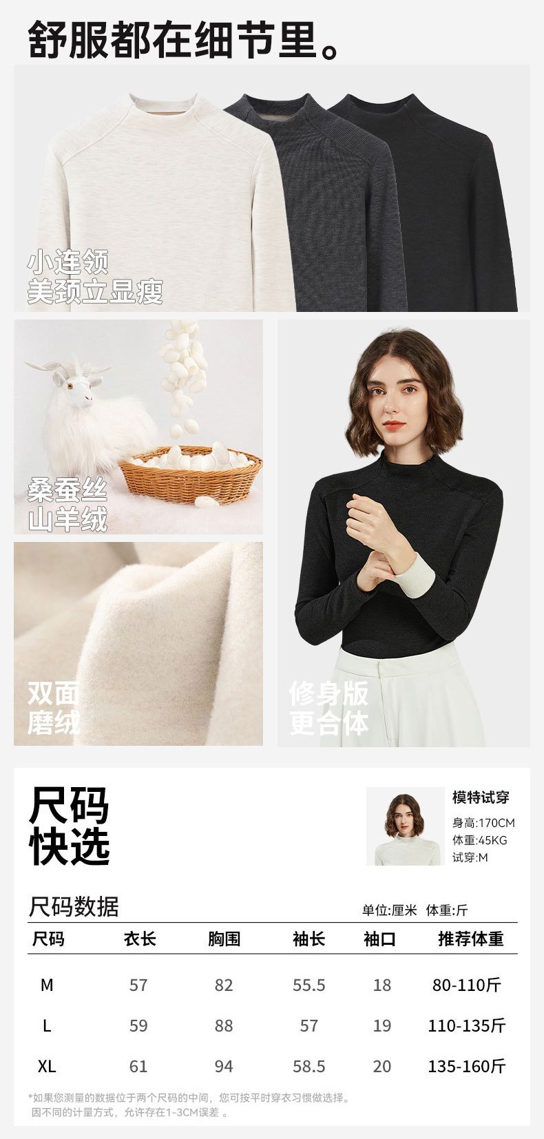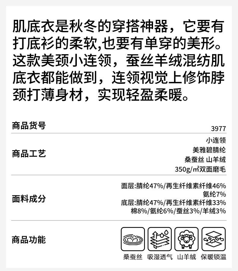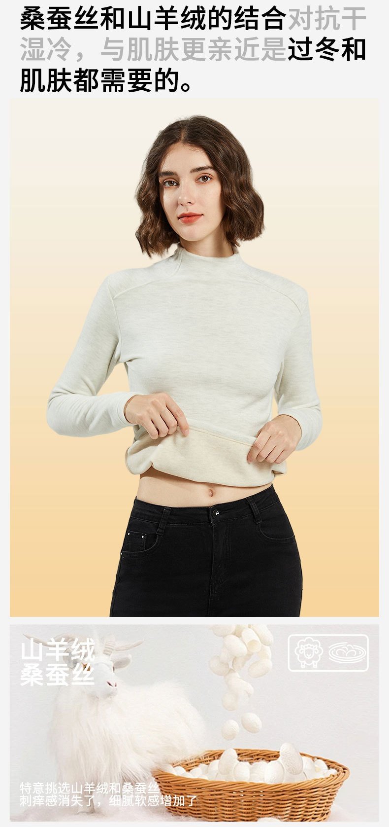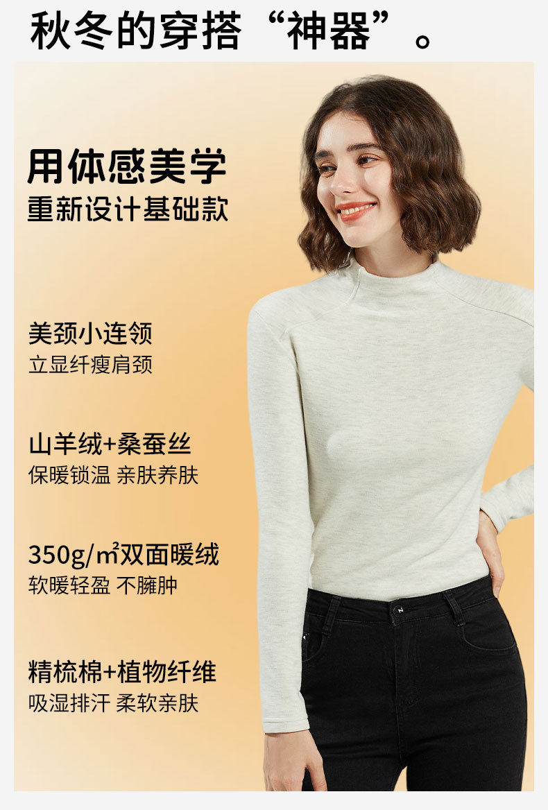 「自」全新升级【铂金会员128/天猫169/差价41】(60328)洛诗琳蚕丝羊绒打底衫2025秋冬半高领的容保暖打底上衣女