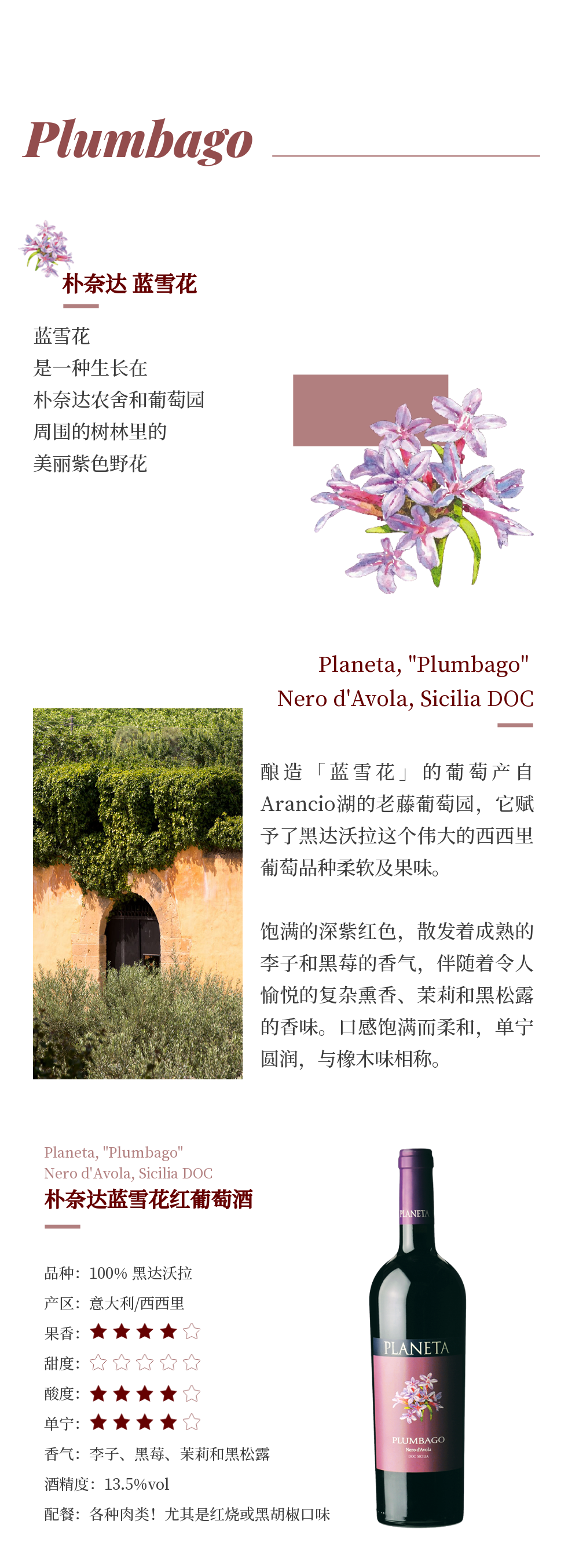 朴奈达酒庄蓝雪花红葡萄酒 2022年份 意大利西西里 Planeta “Plumbago” Nero d'Avola