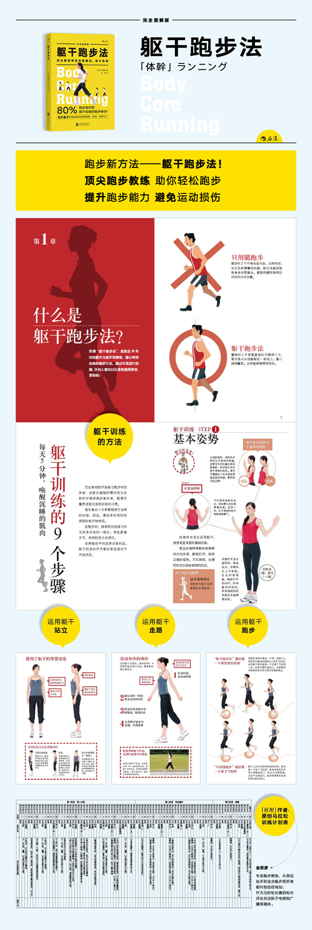 这是一本适合跑步爱好者的入门书。专业跑步教练金哲彦总结了田径运动员的跑步秘诀,开创了“躯干跑步法”,教你学会利用躯干力,进而避免运动损伤,提高运动水平。运用“躯干跑步法”,你将更热爱跑步,跑得更稳、更快、更省力。