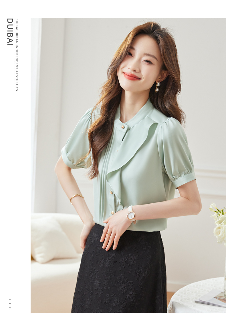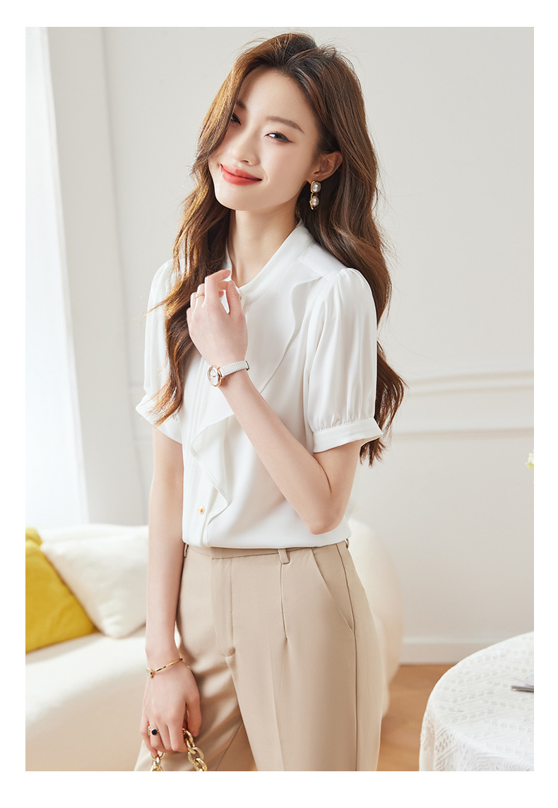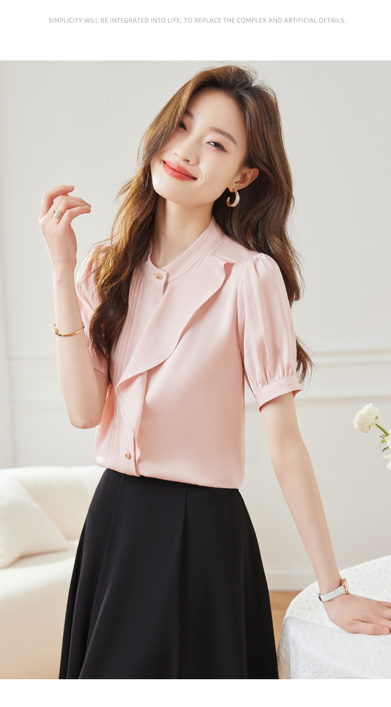 BMZ6798 2024年新款夏季设计感荷叶边圆领上衣时尚洋气职业衬衫女短袖衬衣