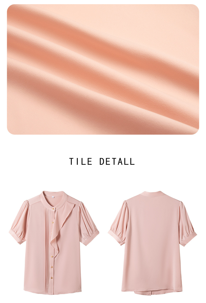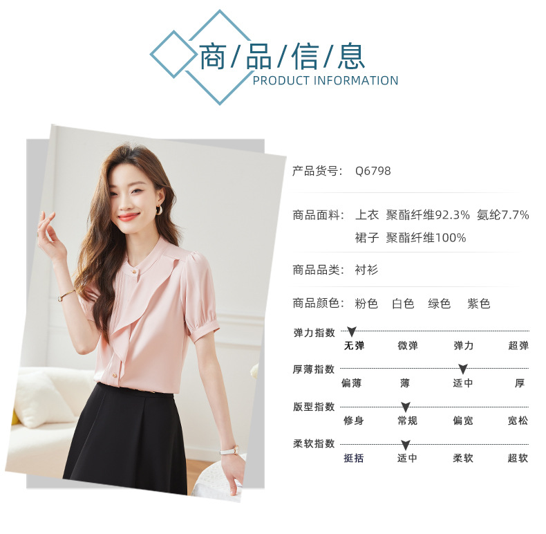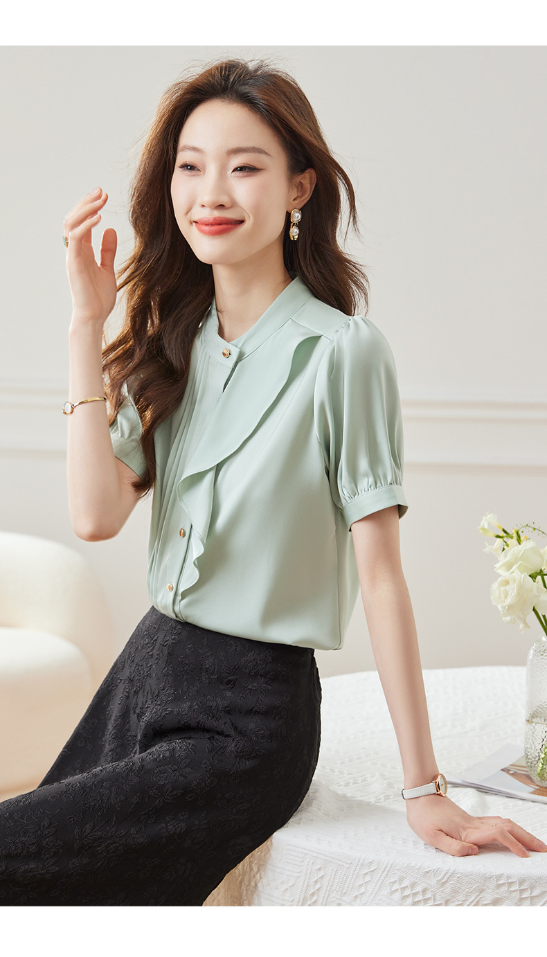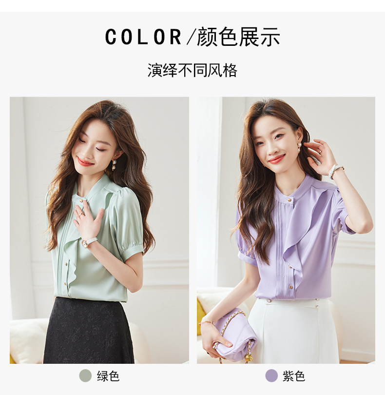 BMZ6798 2024年新款夏季设计感荷叶边圆领上衣时尚洋气职业衬衫女短袖衬衣
