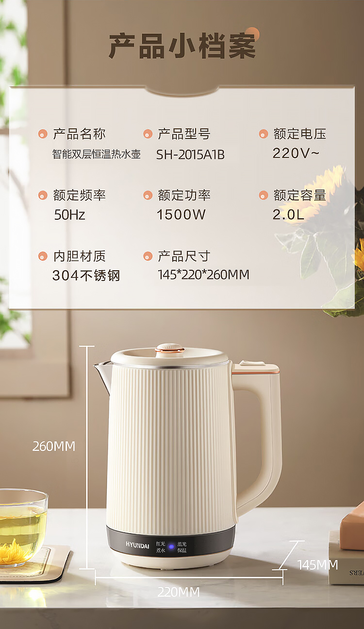 HYUNDAI智能双层恒温电热水壶