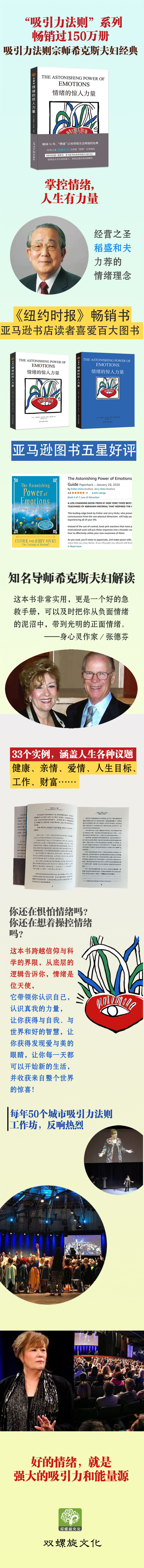 “真好,对于那些追求更加美满生活的人而言,这真是一本好书!”埃斯特在为这本新书定稿的时候,忍不住发出由衷的赞叹。这是我们最新出版的亚伯拉罕灵修书:《情绪的惊人力量》。埃斯特和我杰瑞和埃斯特夫妻档是亚伯拉罕灵修团体的领导人,倡导分享爱、接纳、智慧的观念,帮助人们探寻生命的意义,连结内心的自我,提高自我的价值。两人每年在全美超过60个城市举办工作坊,著作都登上了各畅销书排行榜。一起撰写、出版书籍已经有将近20年的时间了,以往,她都只是简单地问我说:“你觉得这本书怎么样?”而这次,她第一次对我赞美道:“这真是一本好书!”