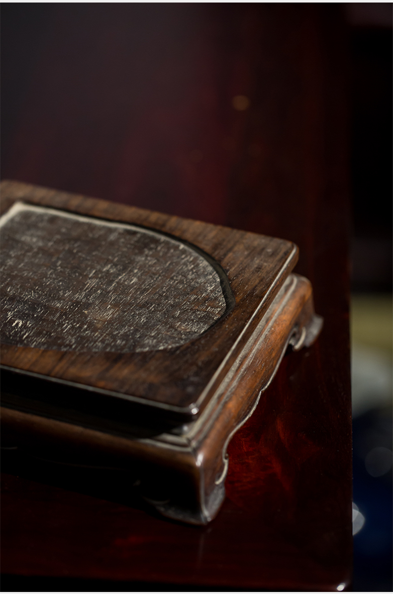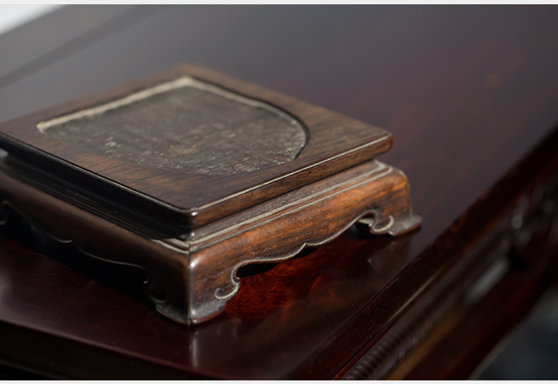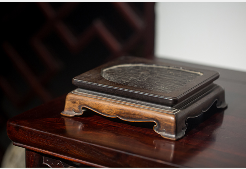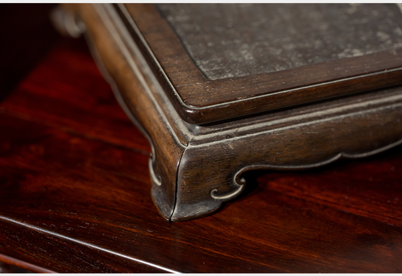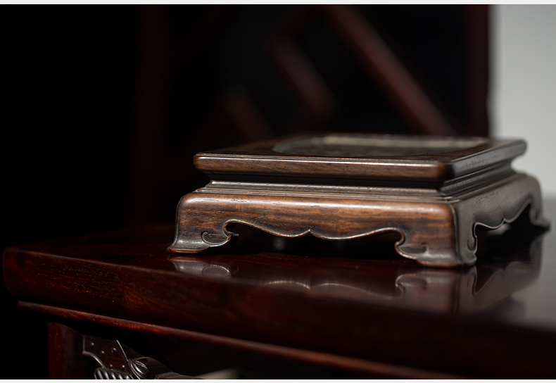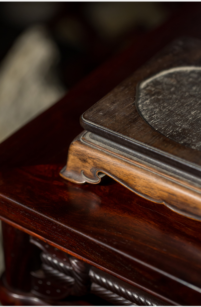 清 青金石嵌绿松石莲花盖盒(红木座)