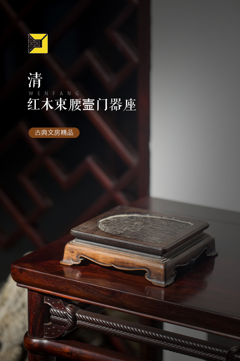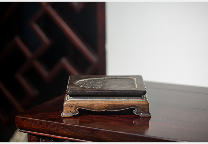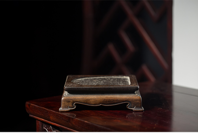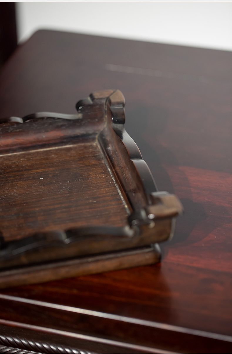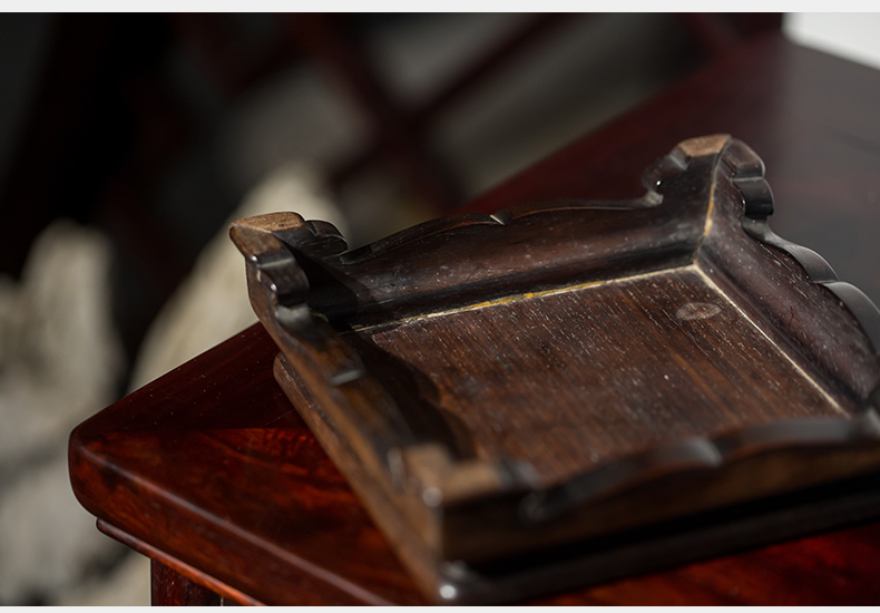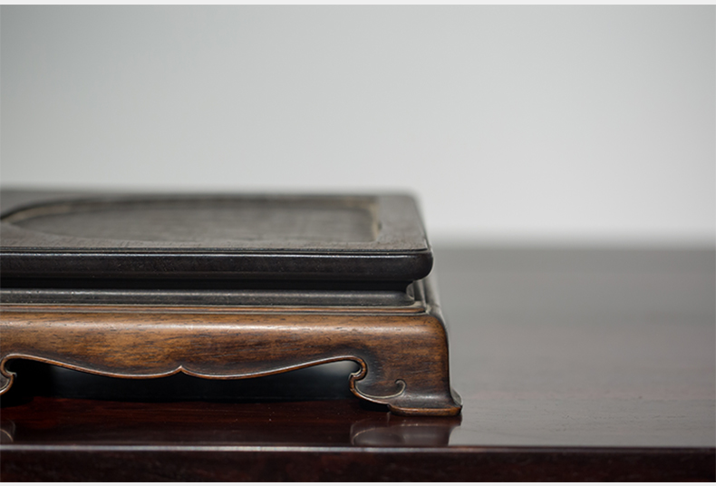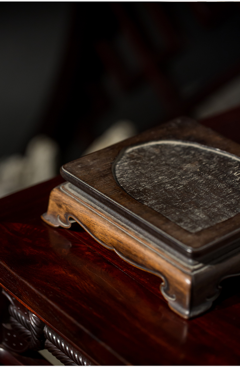 清 青金石嵌绿松石莲花盖盒(红木座)