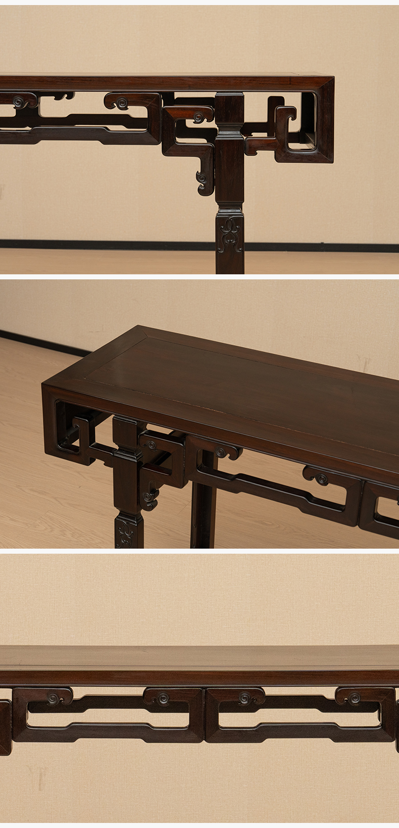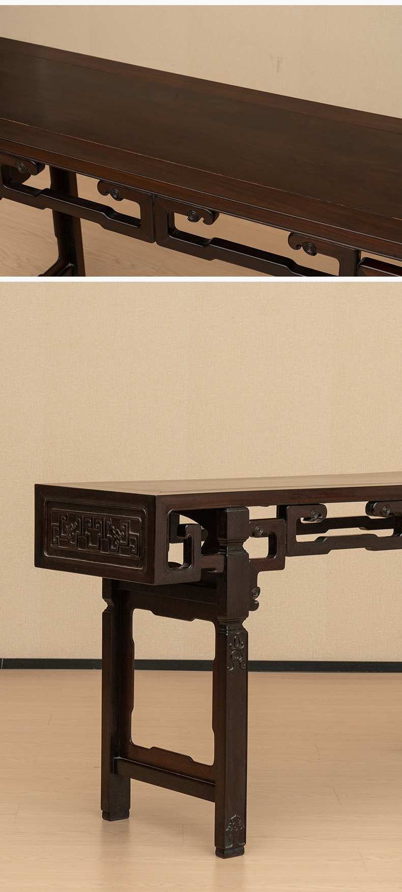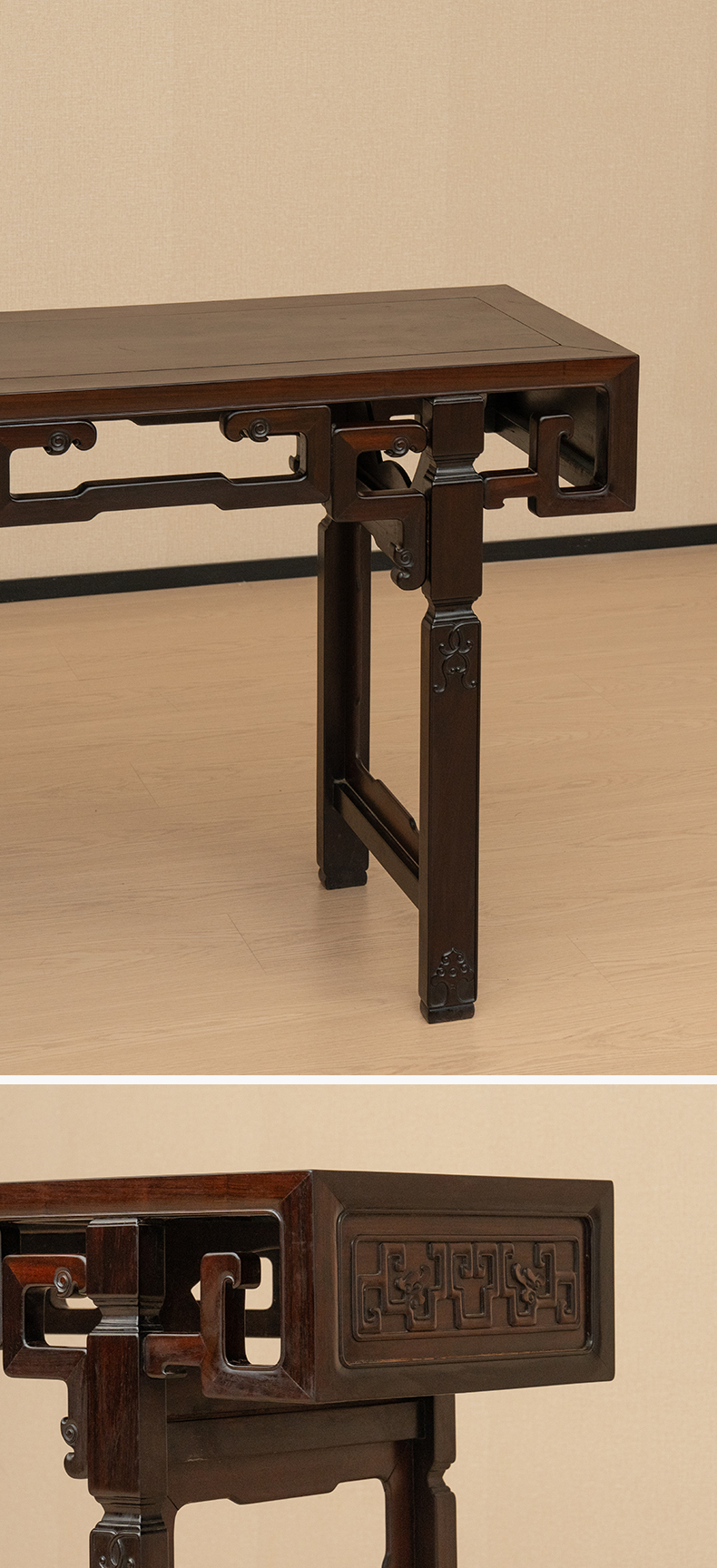 清 红木独板拐子纹平头案