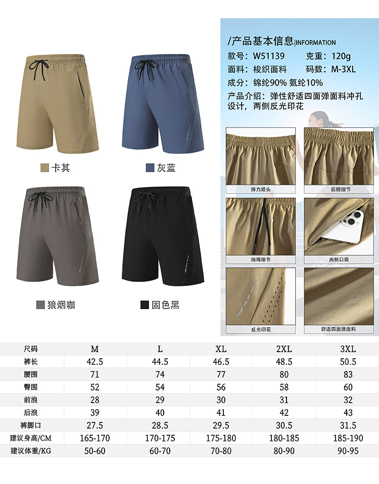 跃牌【跃LEAP-ACTIVE】 男士锦纶五分单层短裤薄款冰丝弹力休闲速干运动短裤W51139