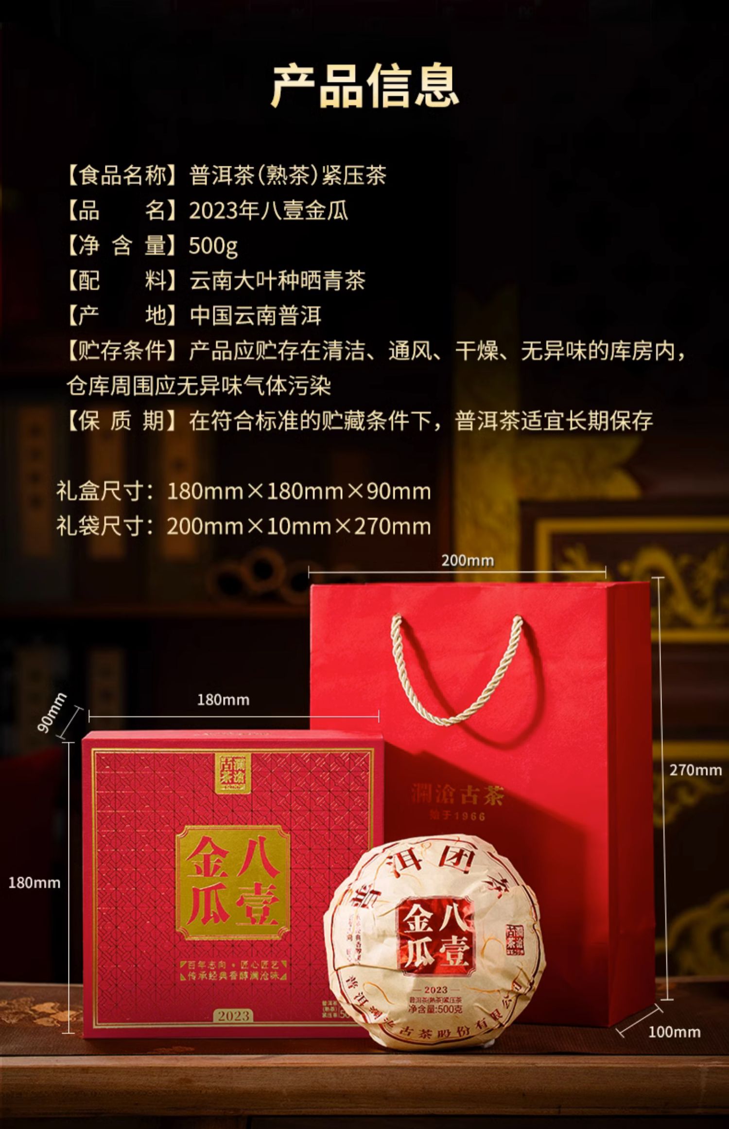 澜沧古茶2023年八壹金瓜云南普洱熟茶金瓜礼盒装500g