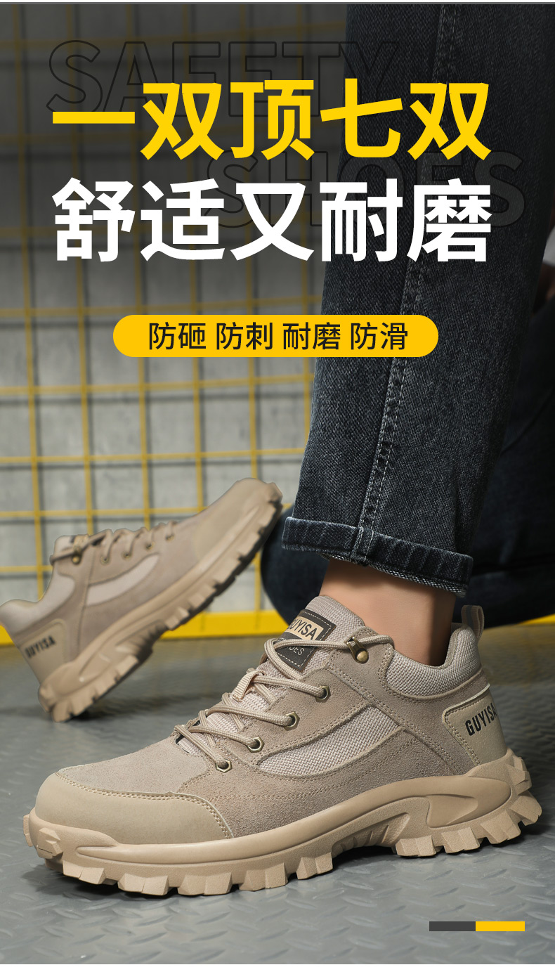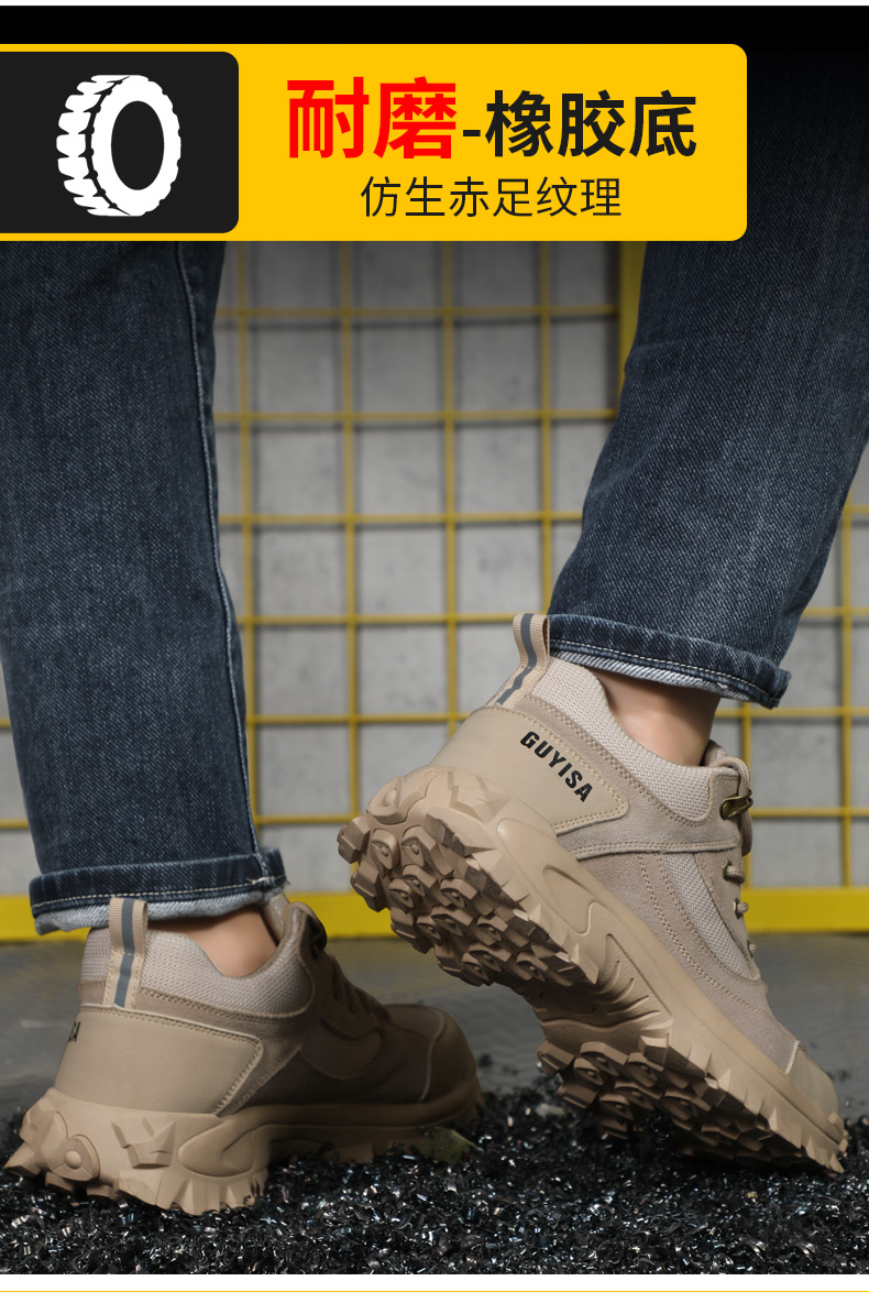 劳保鞋防砸防刺反绒皮橡胶大底四季款功能鞋