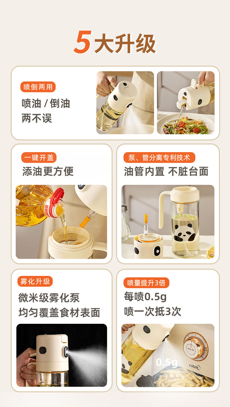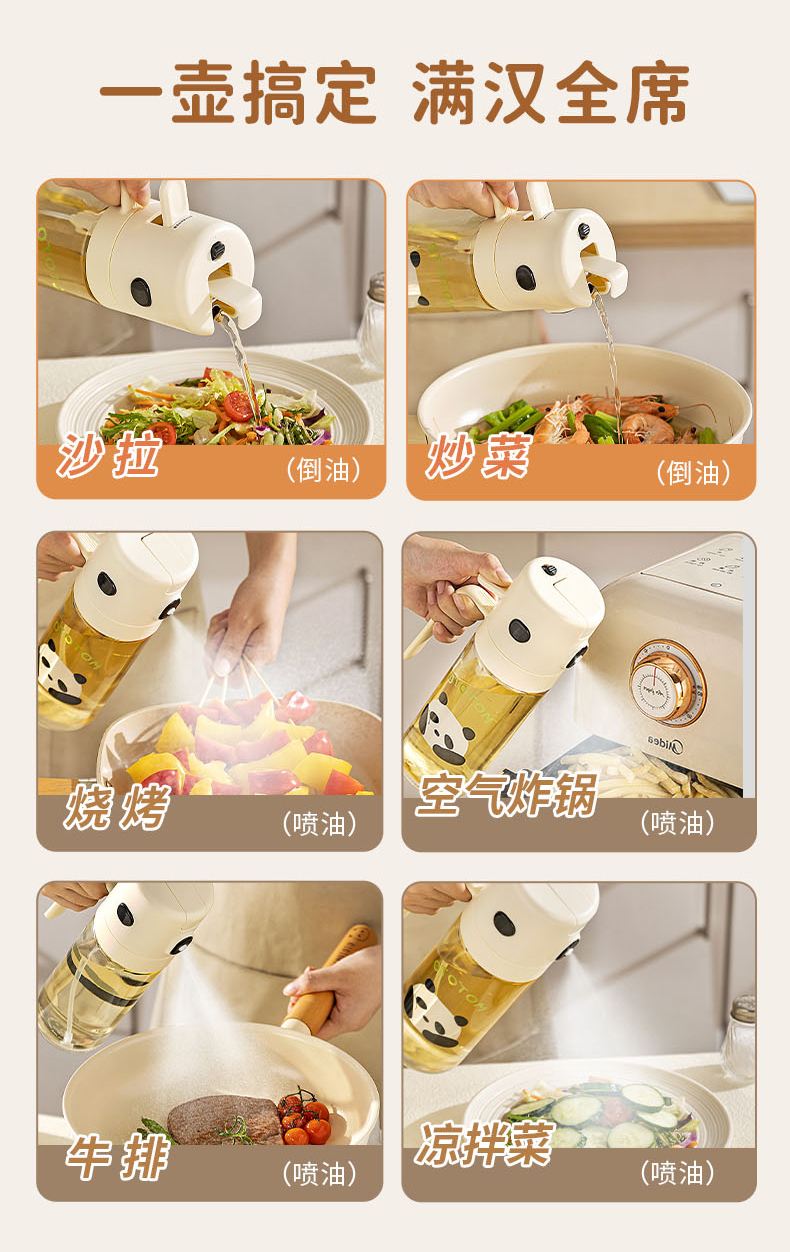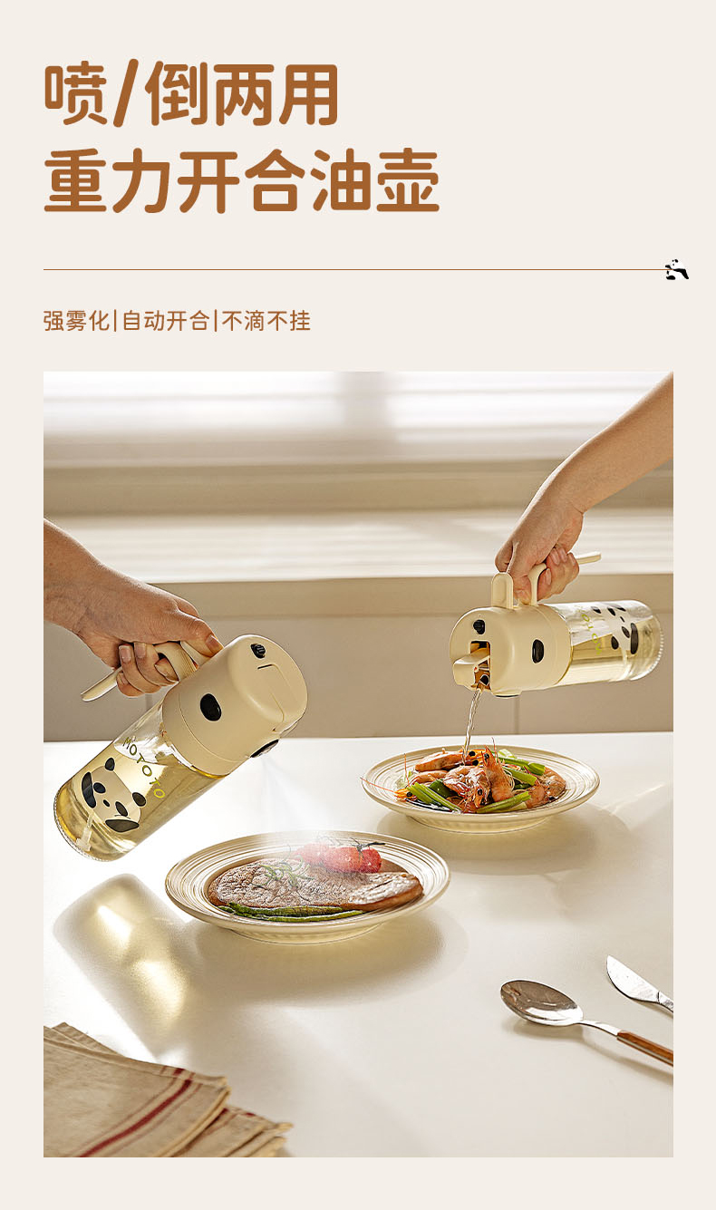摩登主妇mototo熊猫喷倒两用喷油壶雾状家用厨房不挂油食品级油瓶