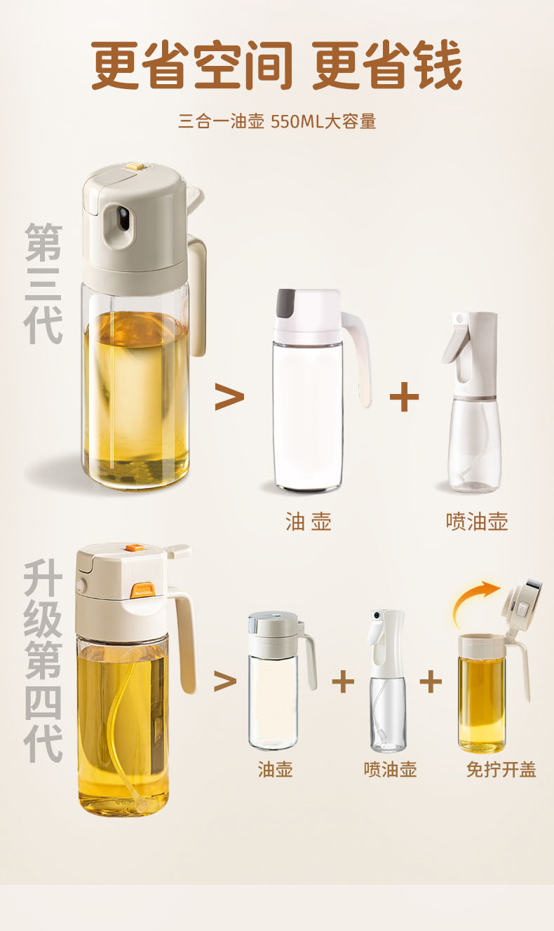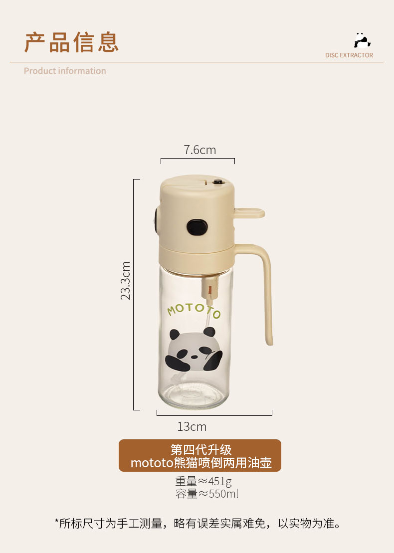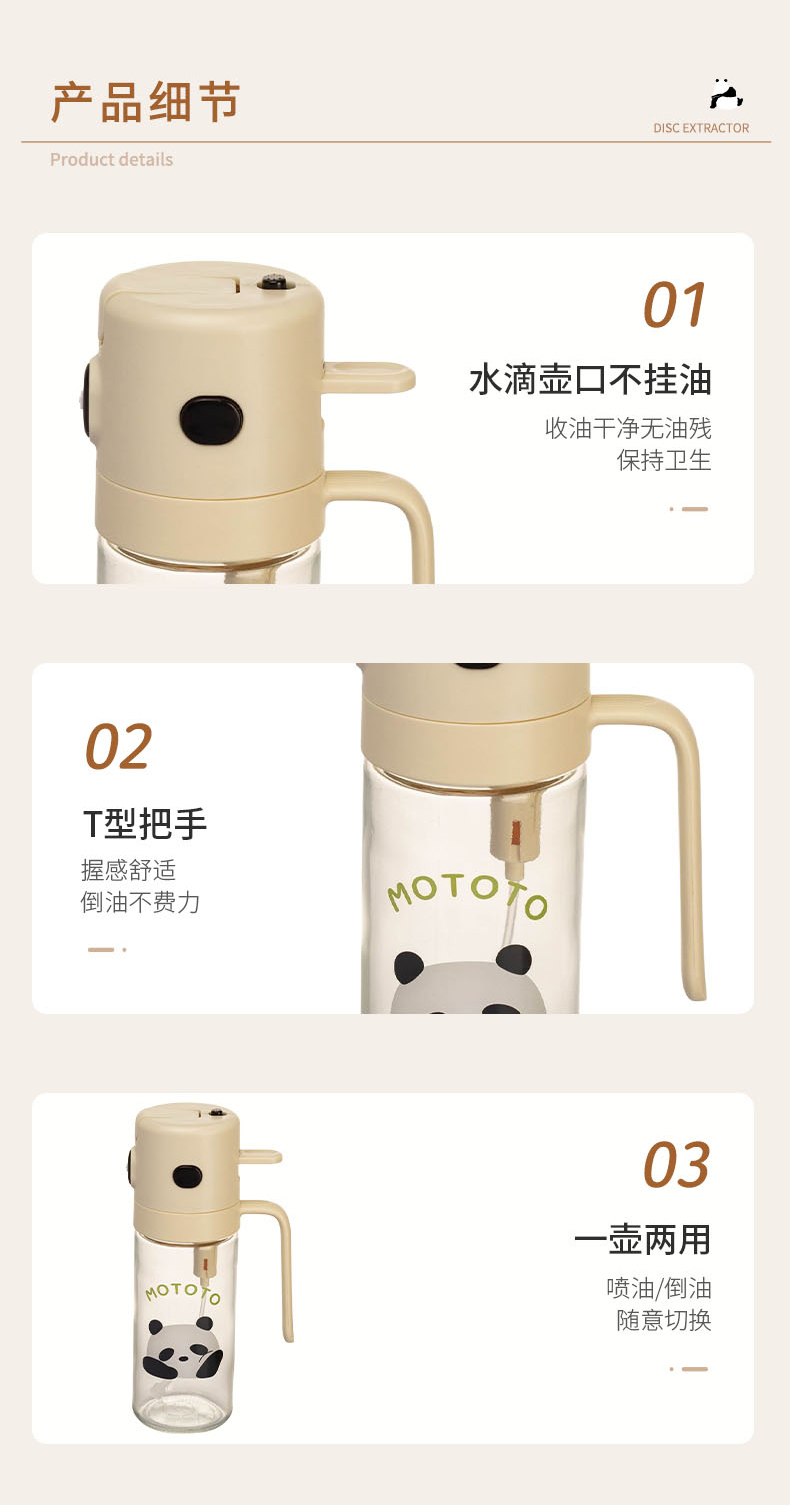 摩登主妇mototo熊猫喷倒两用喷油壶雾状家用厨房不挂油食品级油瓶