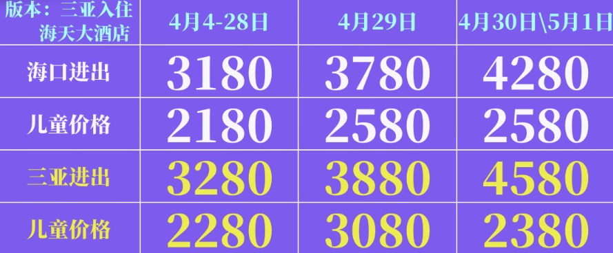 五一团期:4月29/30日,5月1日
