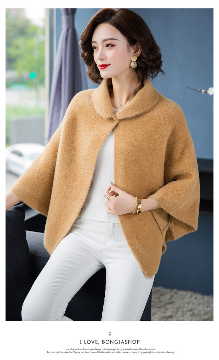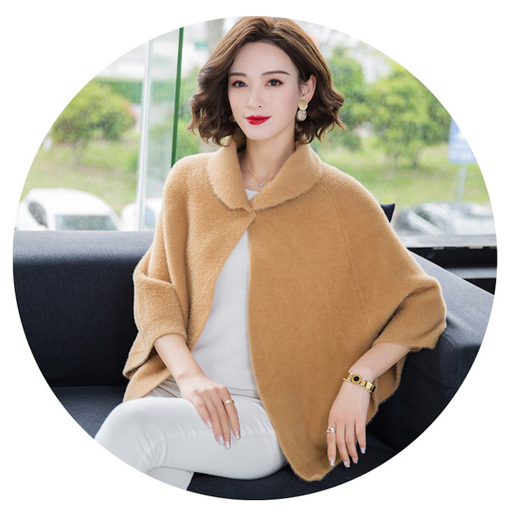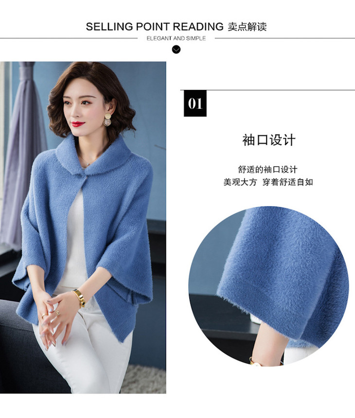 FCY-MB19001新款时尚气质宽松短款仿水貂斗篷披肩外套【优】