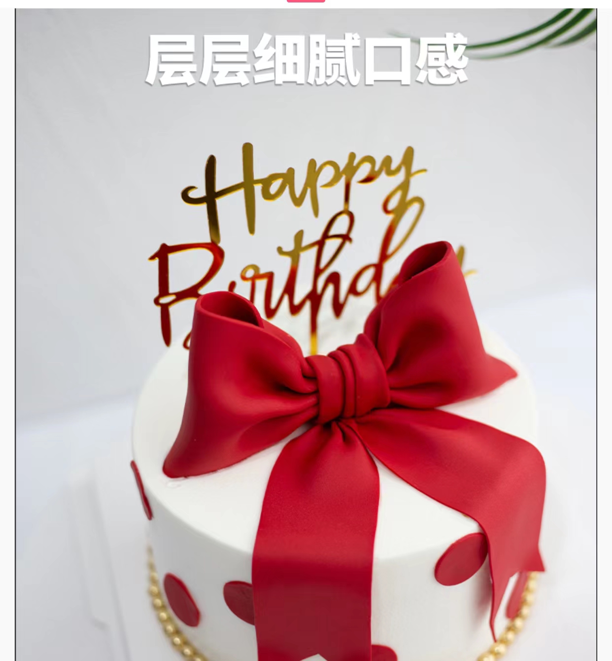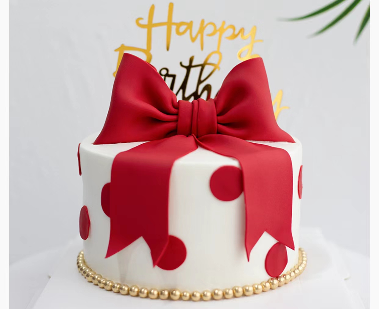 复古酒红翻糖蝴蝶结女神女生公主生日蛋糕