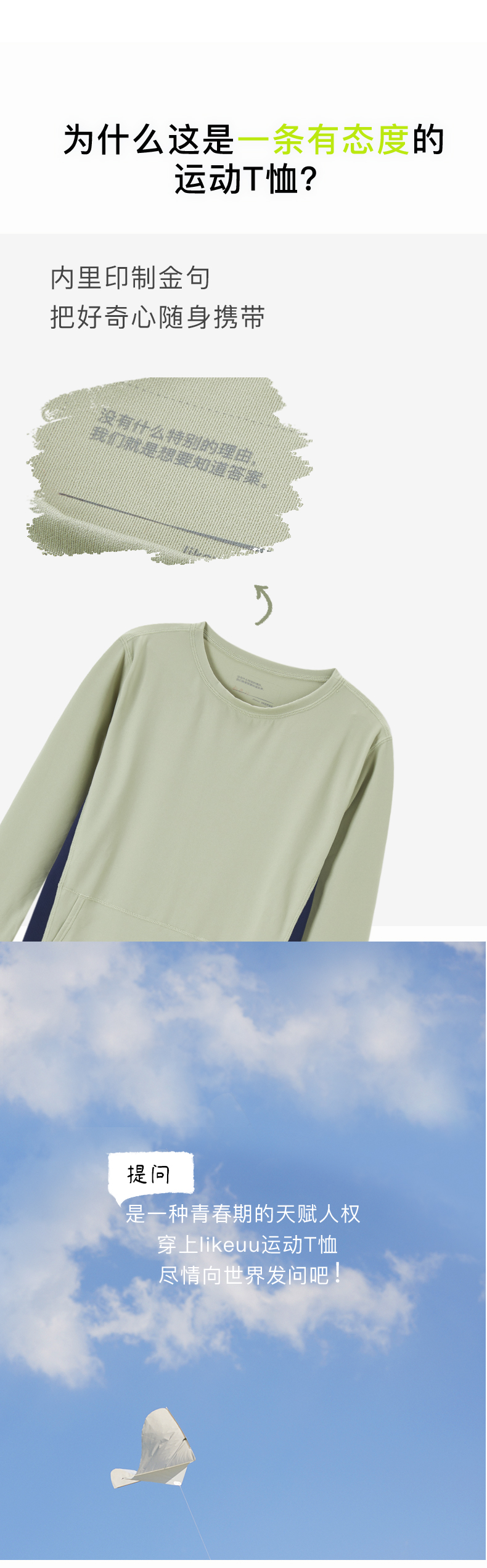 likeuu女童长袖t恤少女超柔云感透气运动休闲打底衫春秋上衣