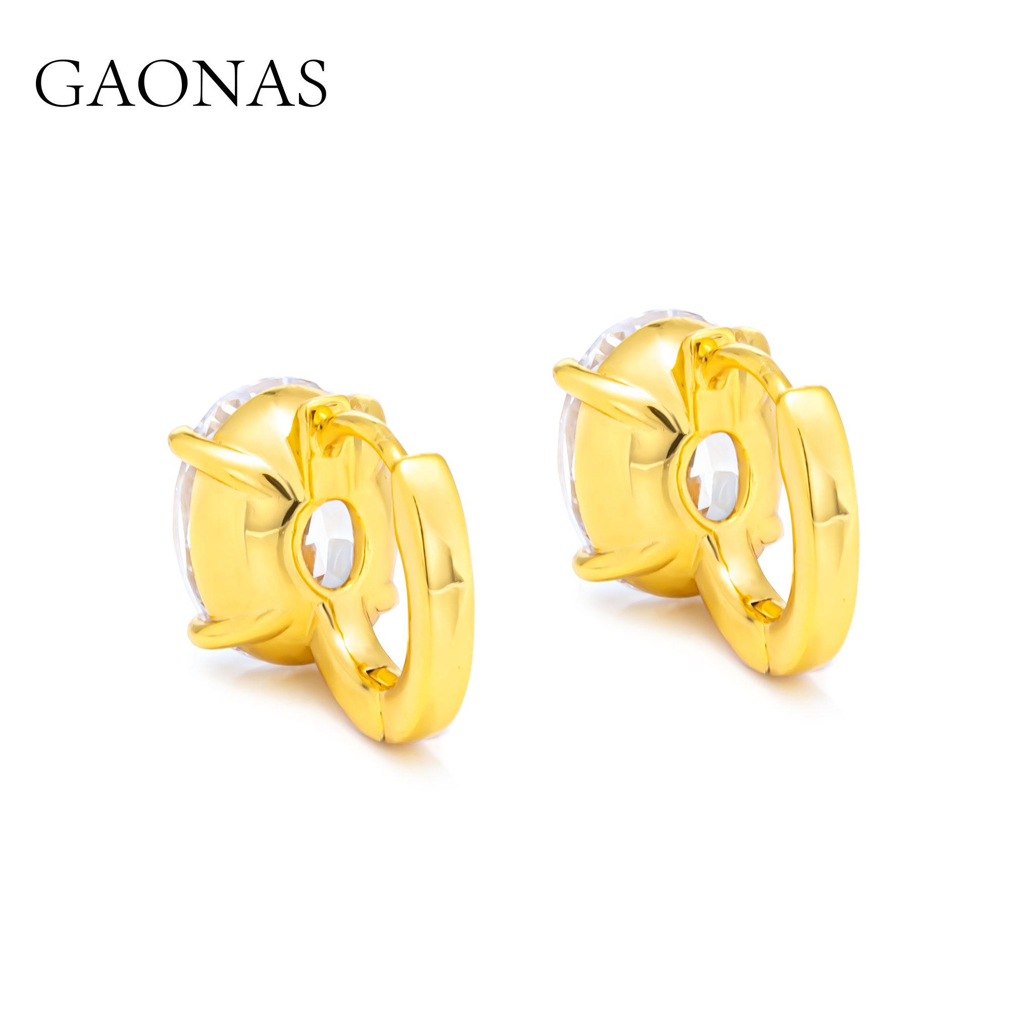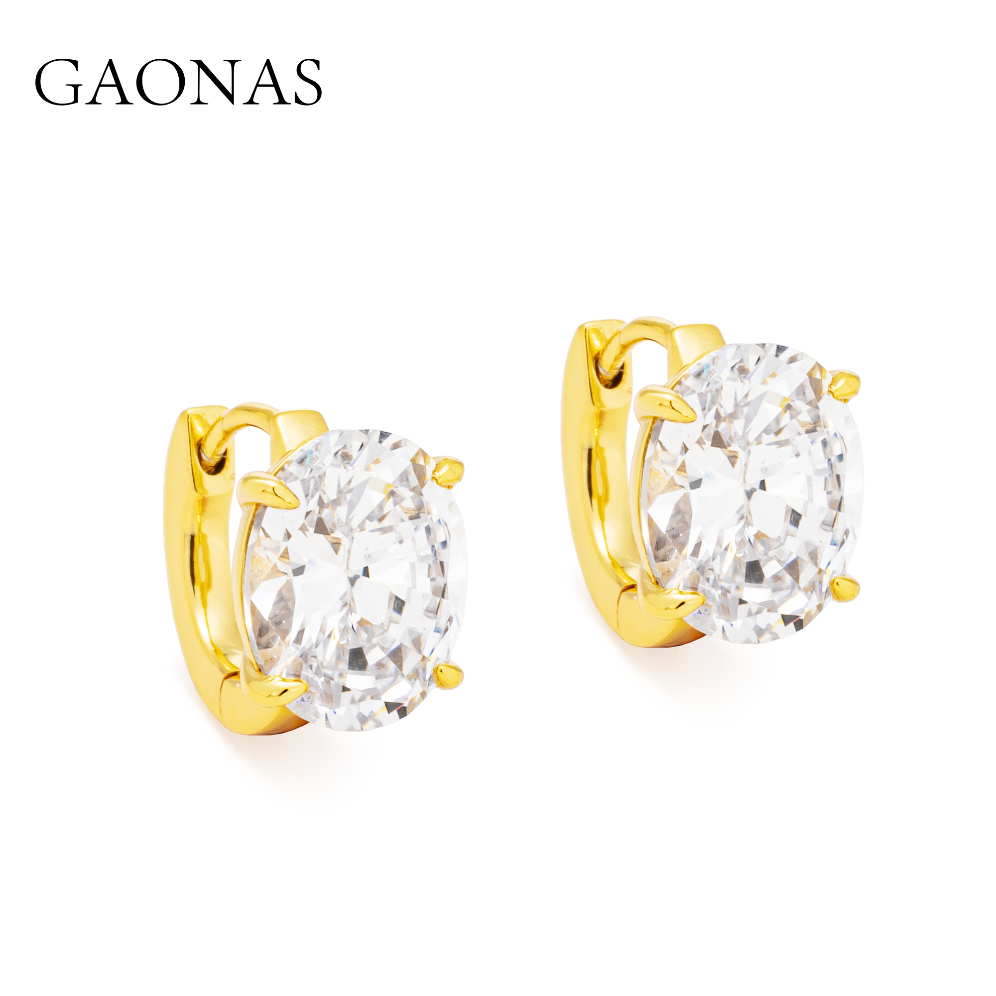 GAONAS 经典贵气椭圆3ct金色耳钉11698EGO