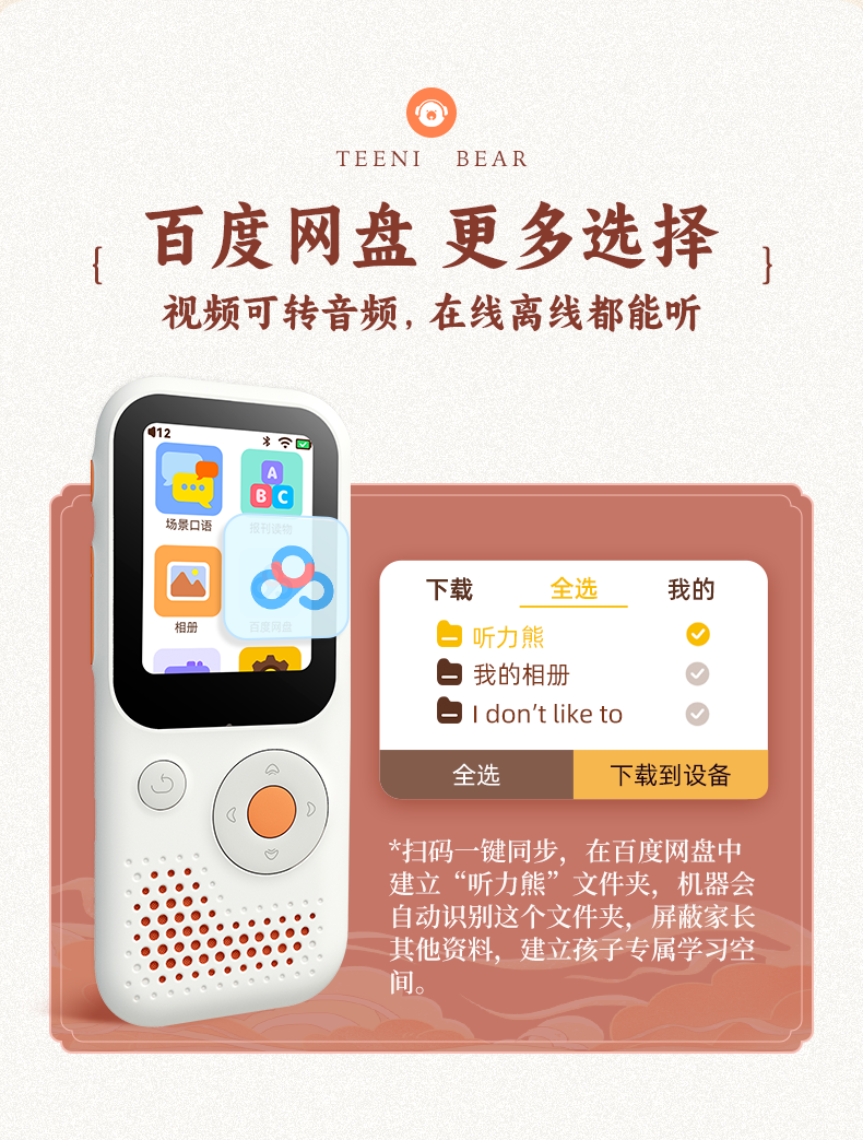 听力熊T6/LINE联名 AI智能听力学习机 磨耳朵神器 复读机 英语随身听 听力宝 小初高学习机 背单词神器