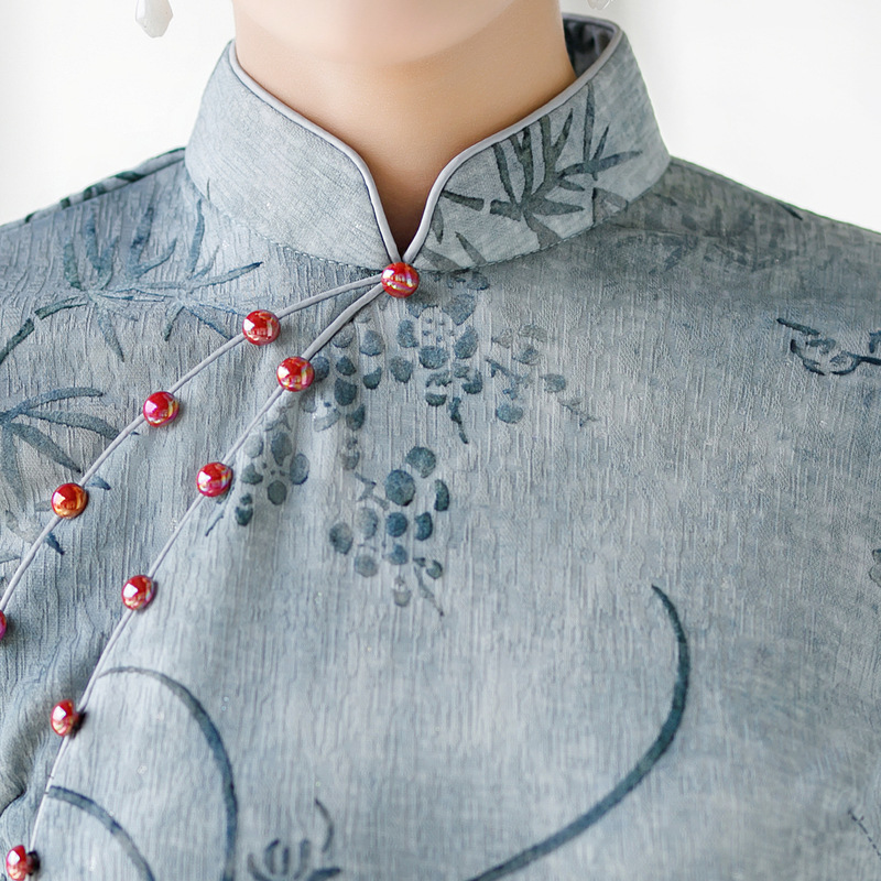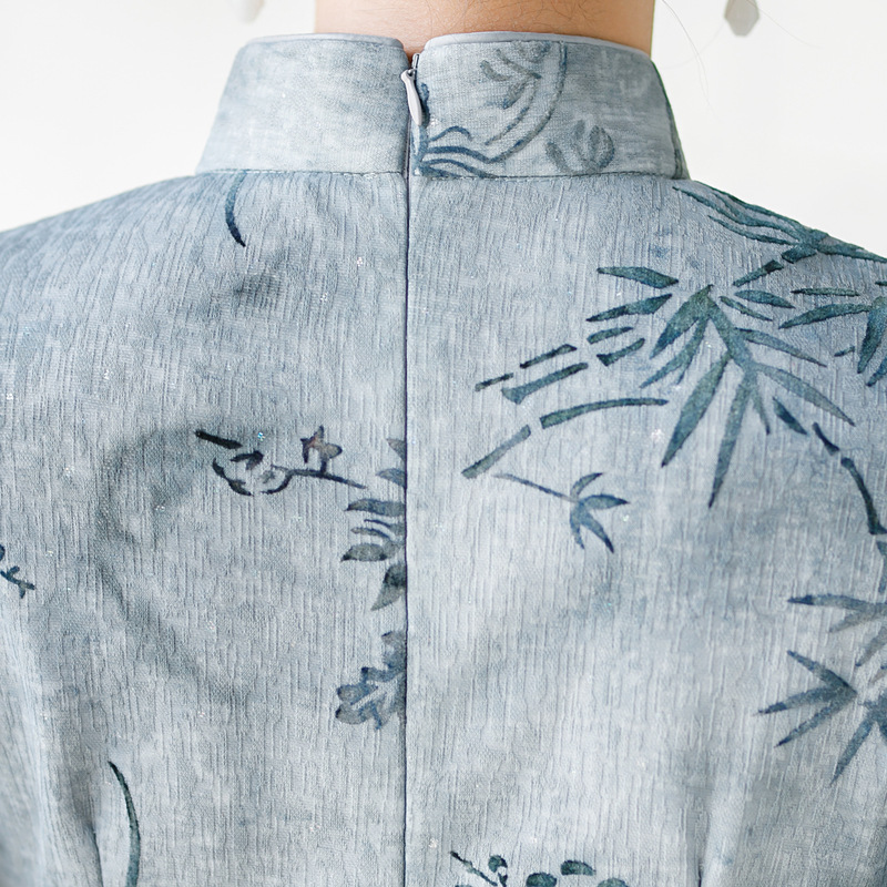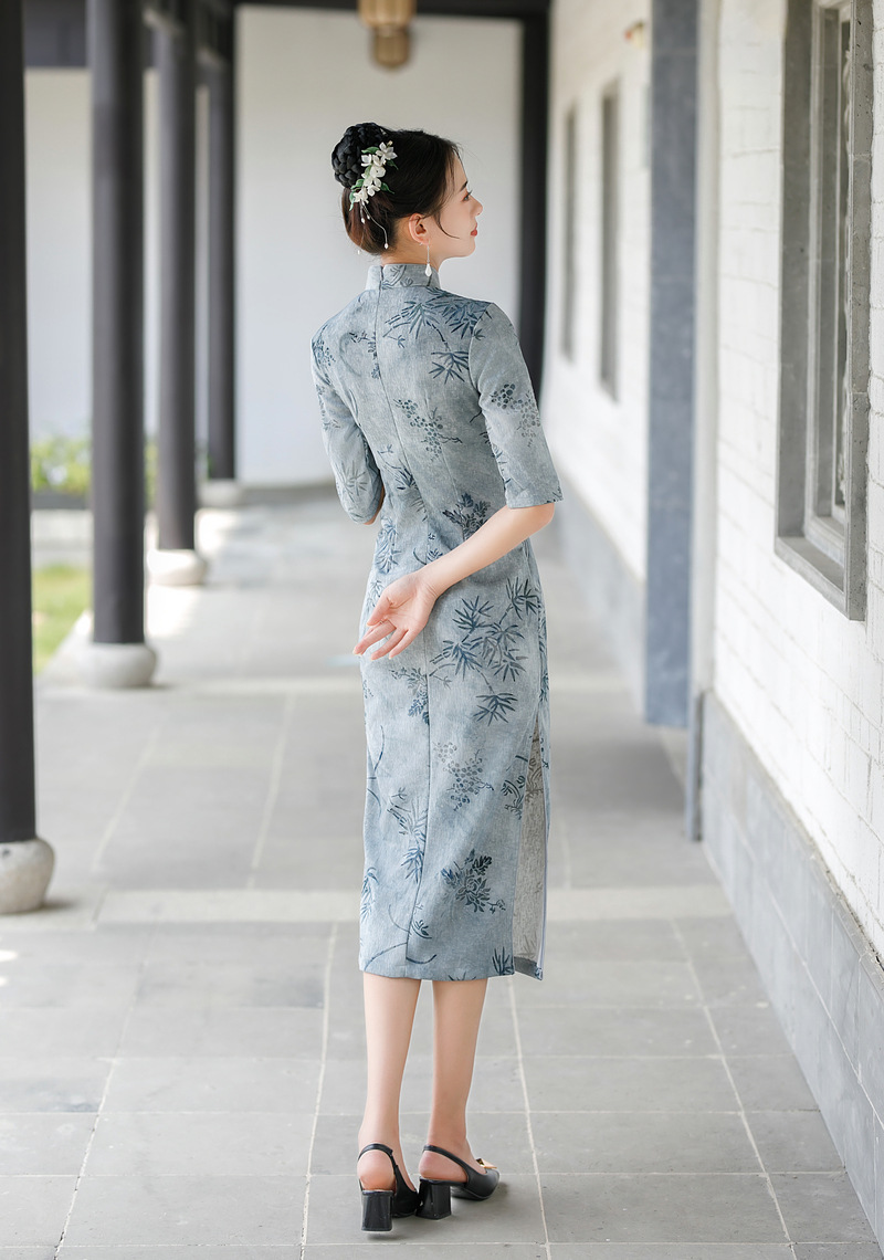 ZAYS-1002秋季女装改良竹节麻复合旗袍日常复古立领气质旗袍裙