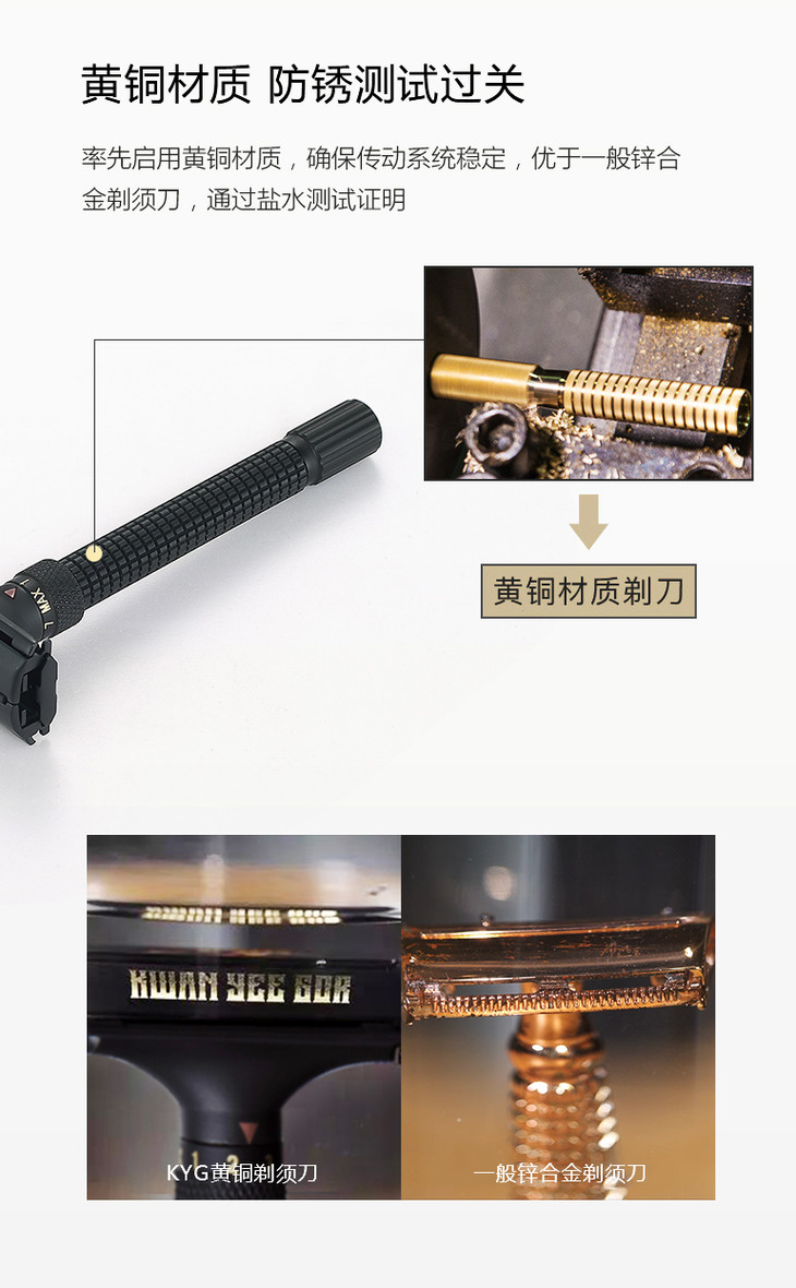 【七档可调手动剃须刀·关二哥体验剃须“革命”】英国KWAN YEE GOR关二哥双刃剃须刀可调节黄铜材质男士护理剃须刀