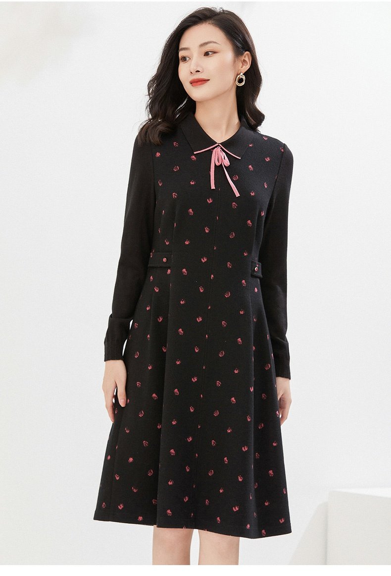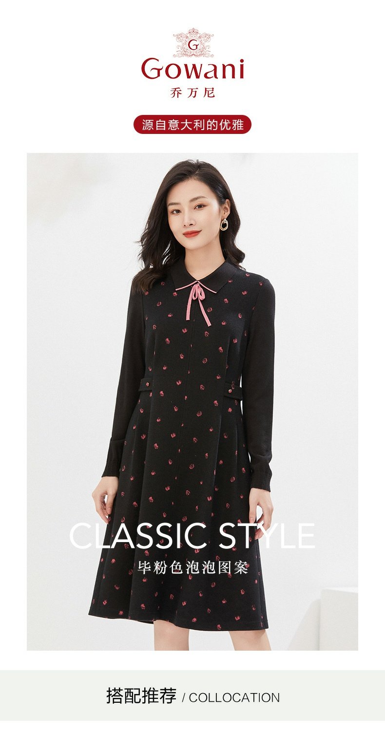 乔万尼秋冬新款绵羊毛连衣裙减龄收腰显瘦EI4E506