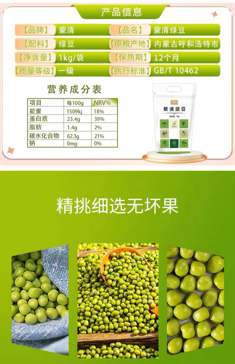 蒙清绿豆1kg新鲜可发芽