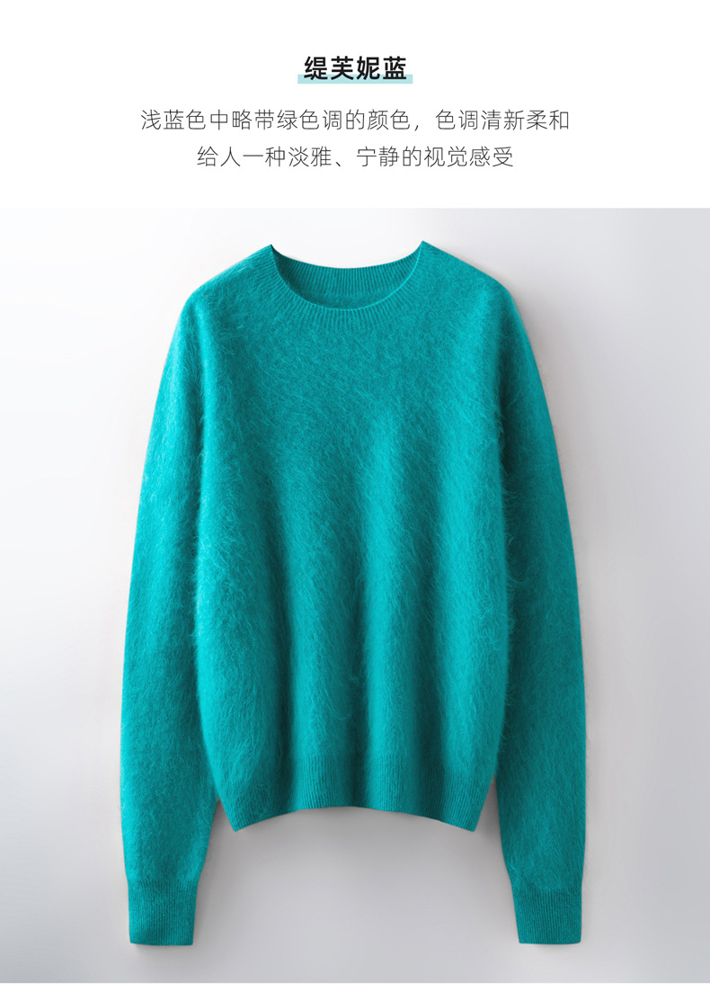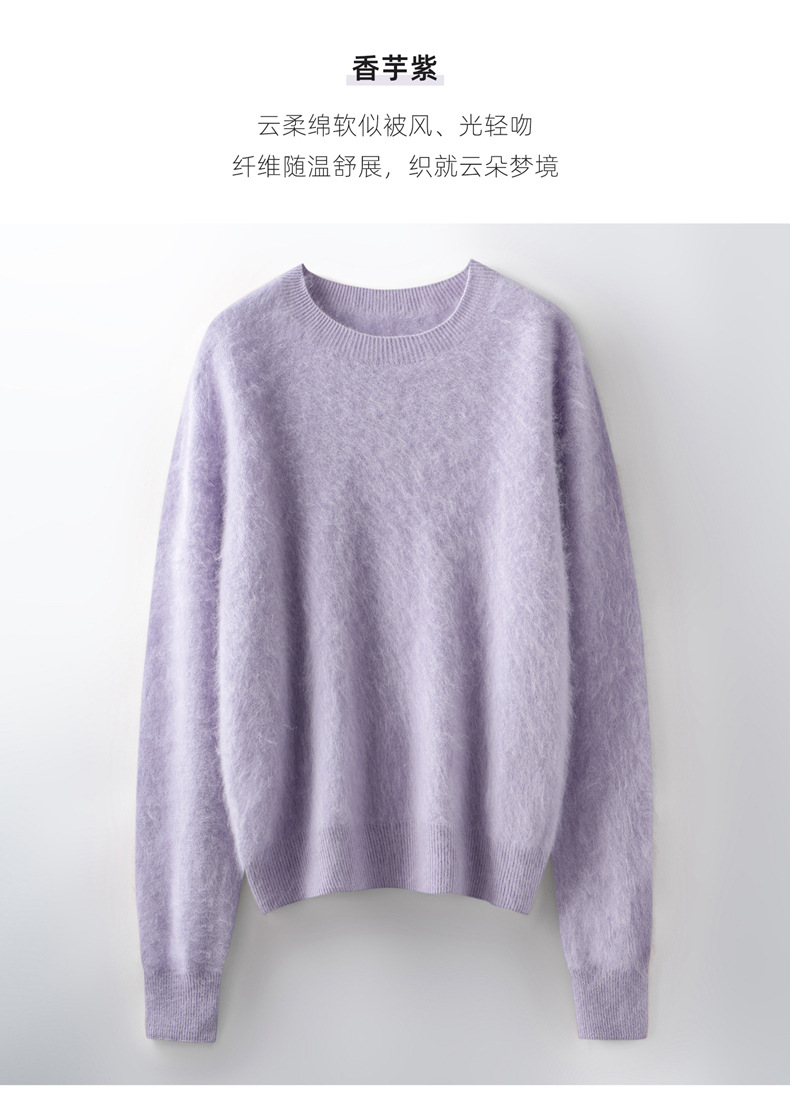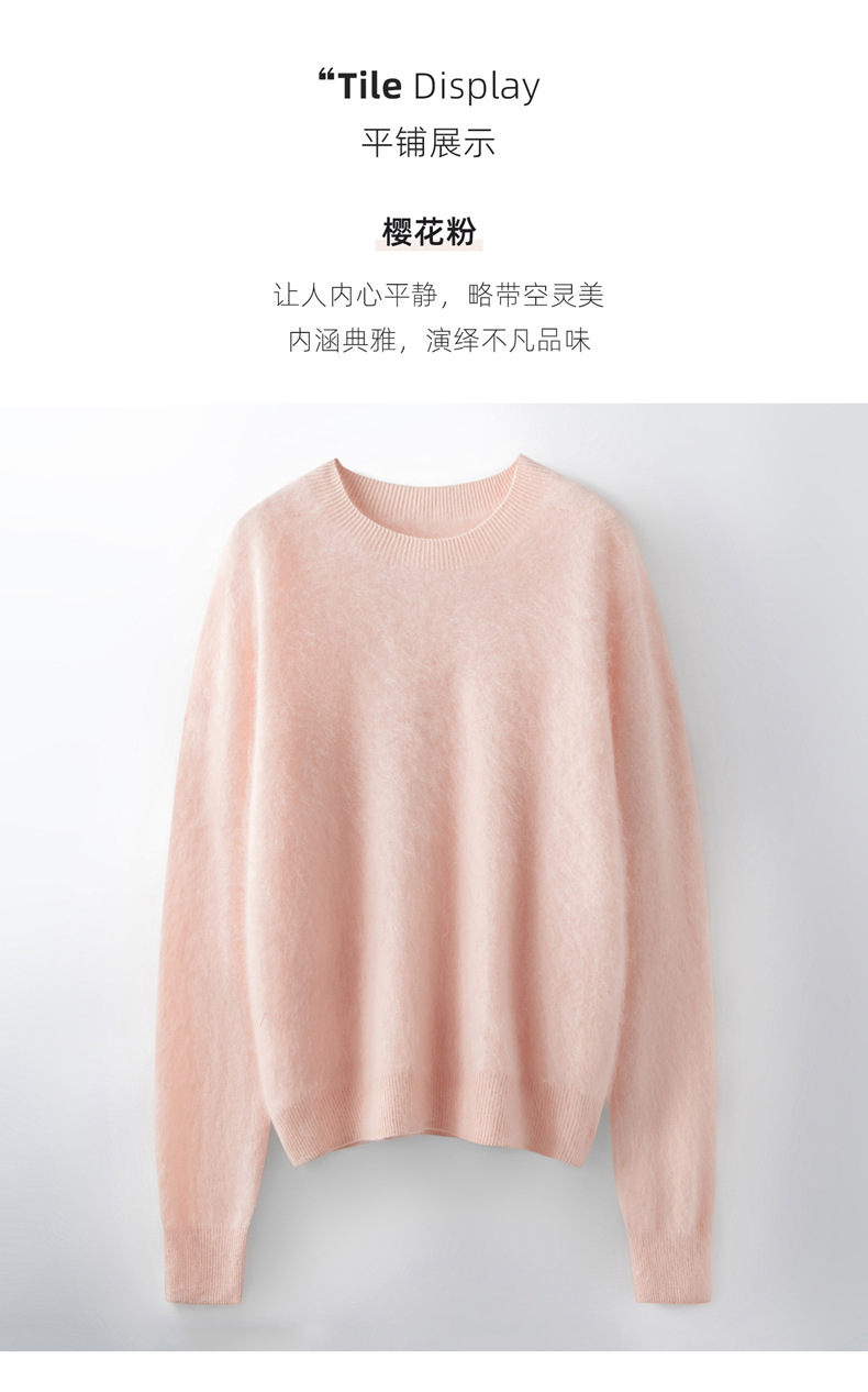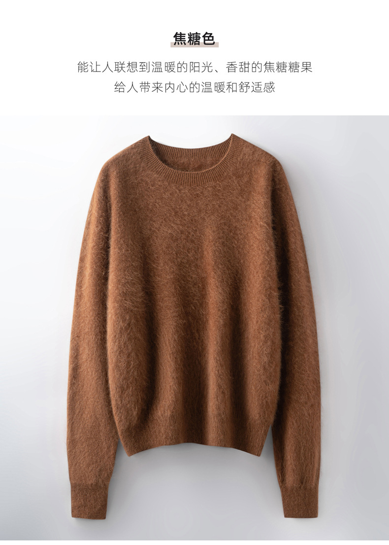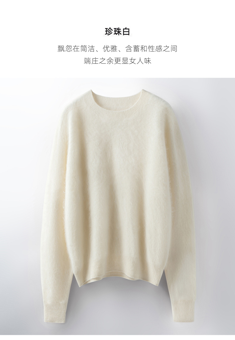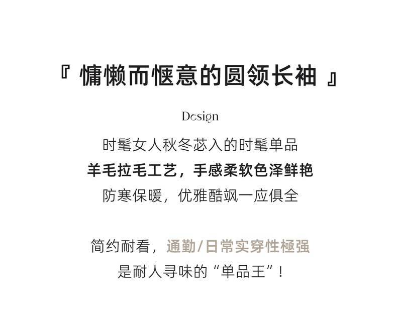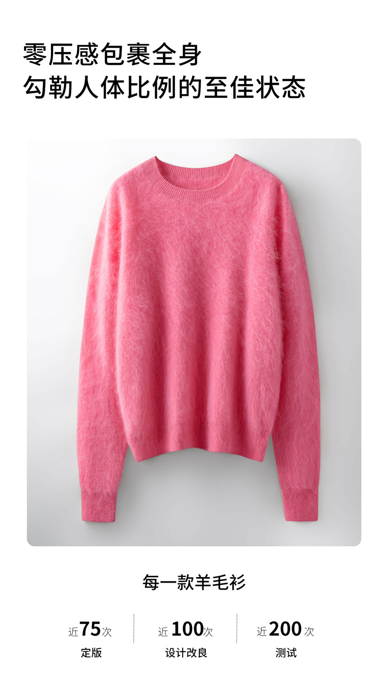 丁摩 山羊绒衫女拉绒圆领毛衣无缝慵懒风拉绒纯色羊毛针织N3330 商品图0