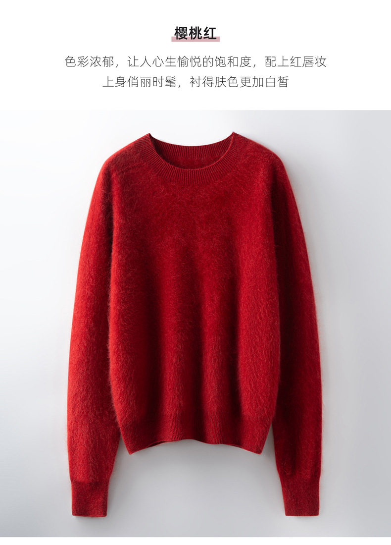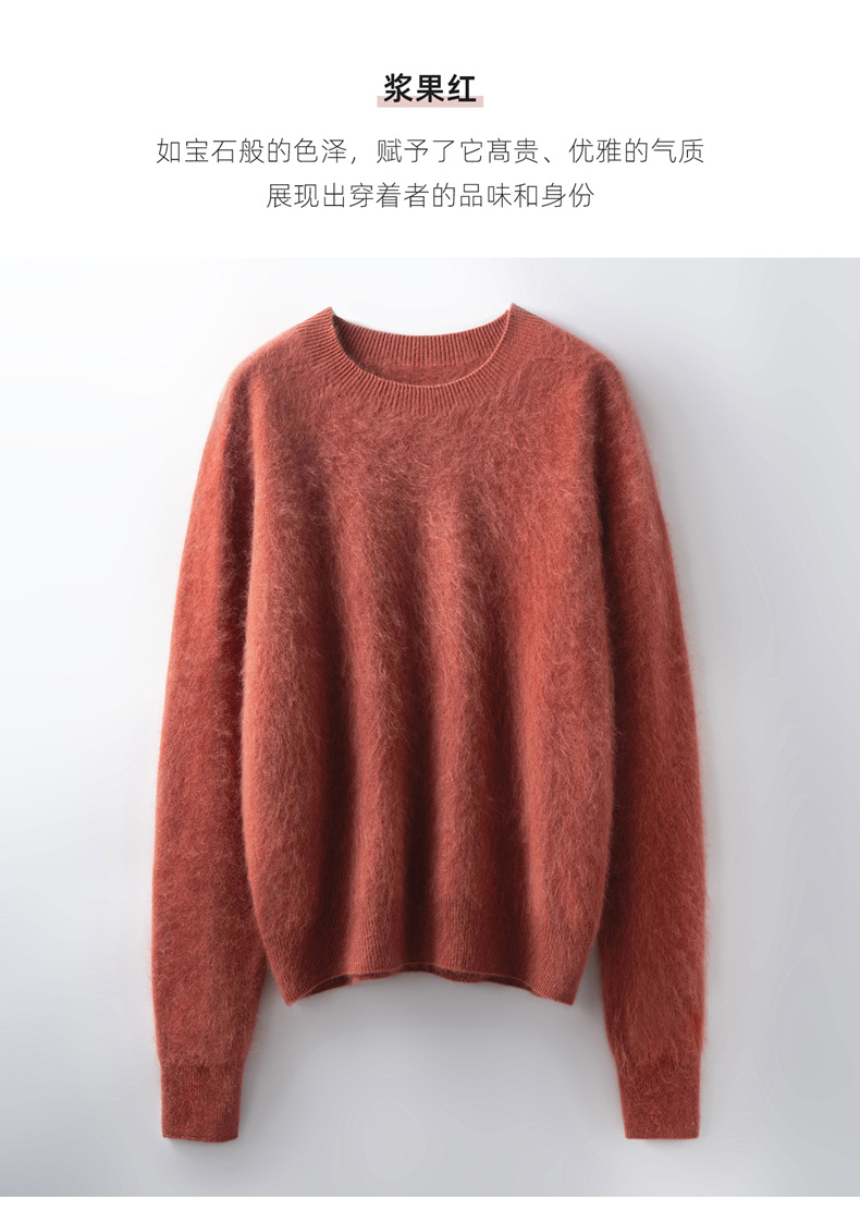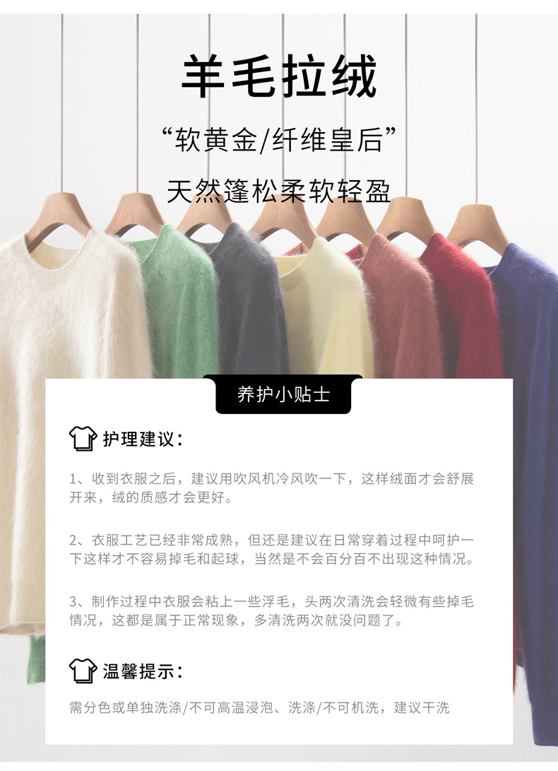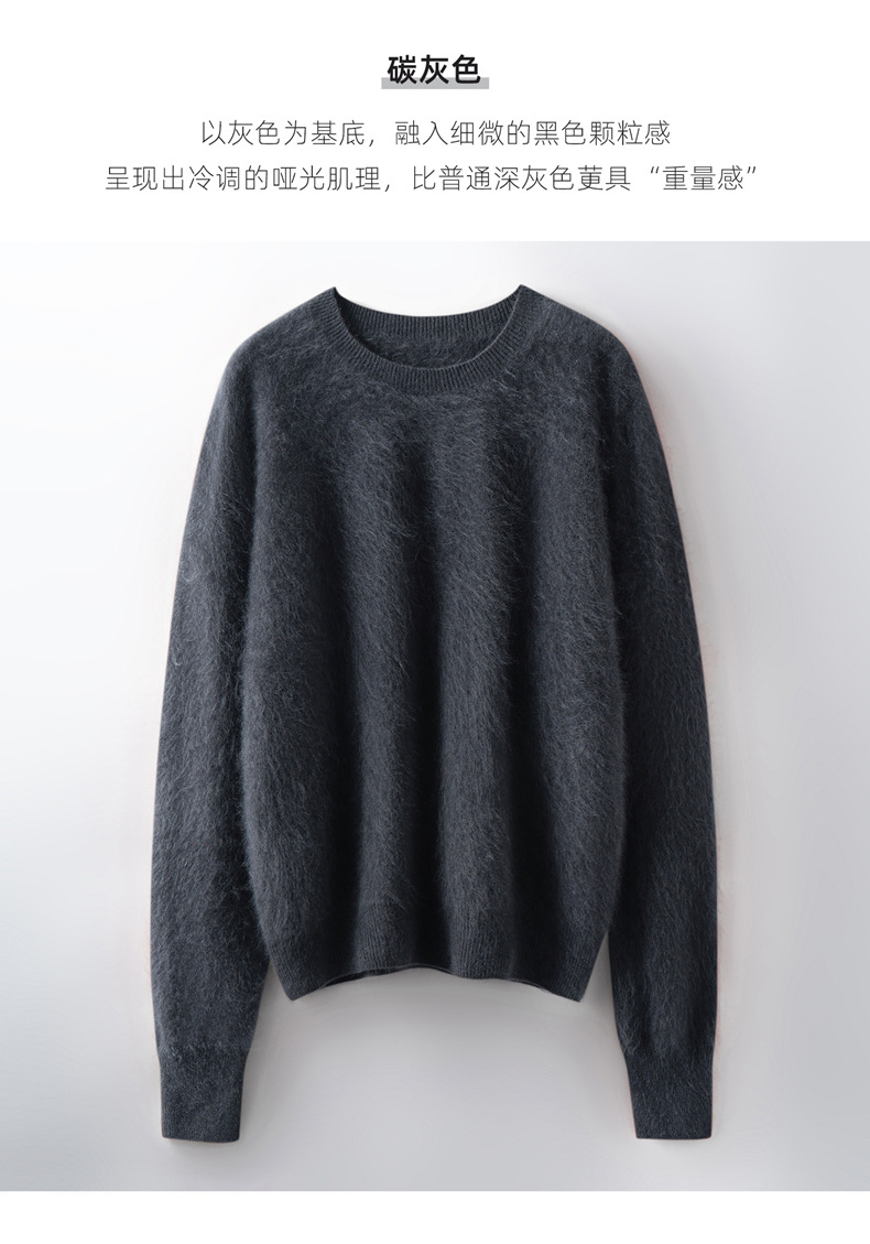 丁摩 山羊绒衫女拉绒圆领毛衣无缝慵懒风拉绒纯色羊毛针织N3330 商品图4