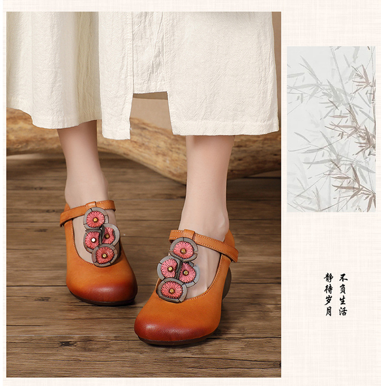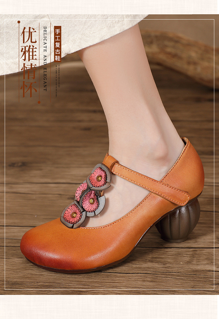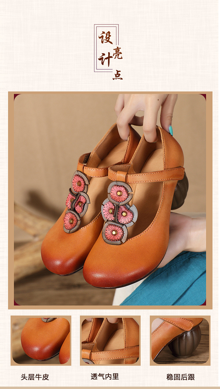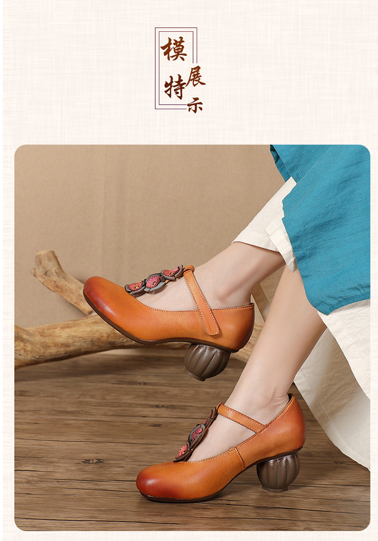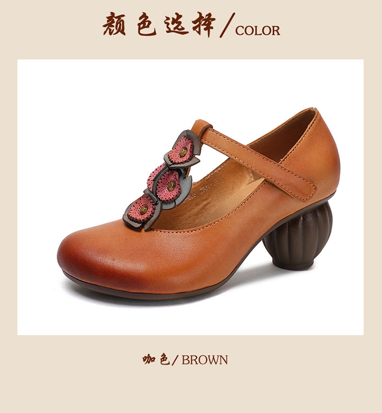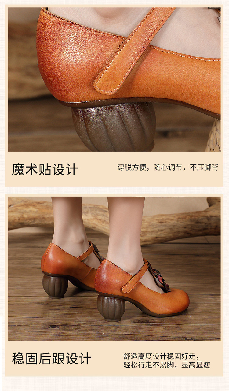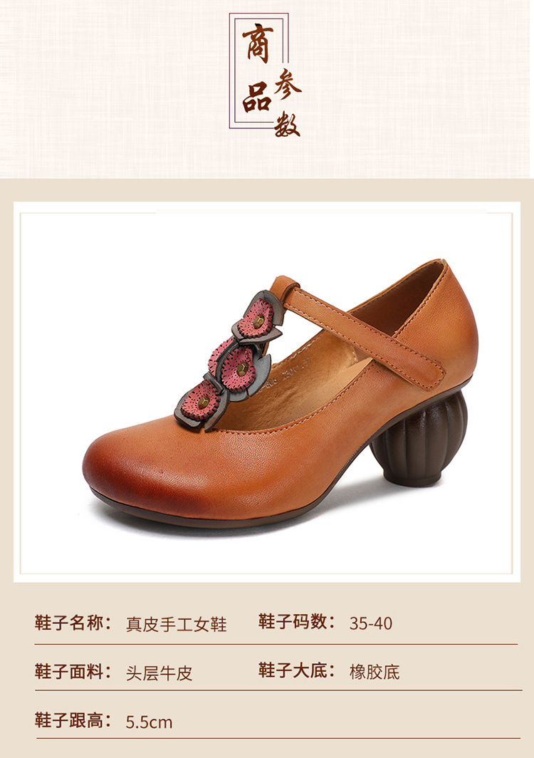 手工擦色复古女单鞋,高跟圆头花朵民族风四季女鞋BC-1983-606