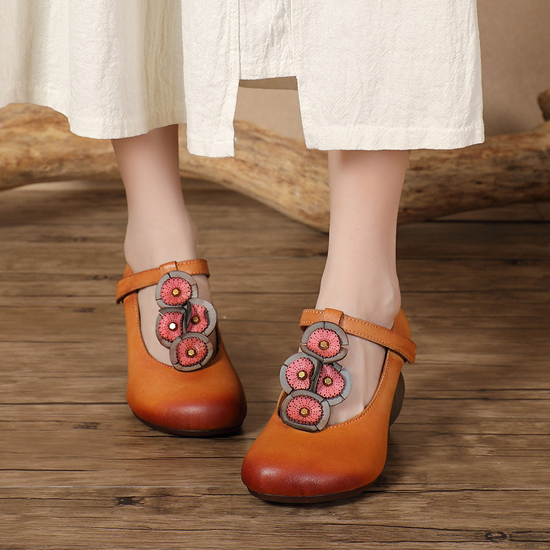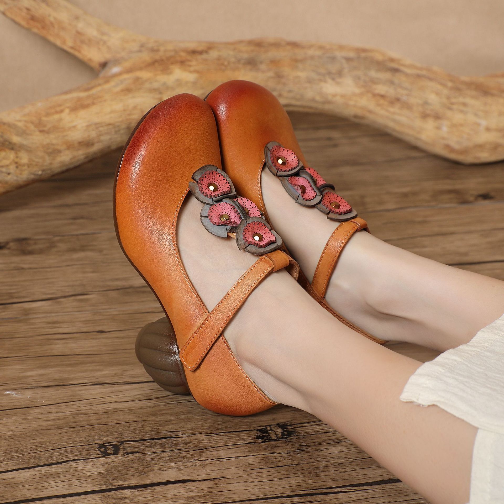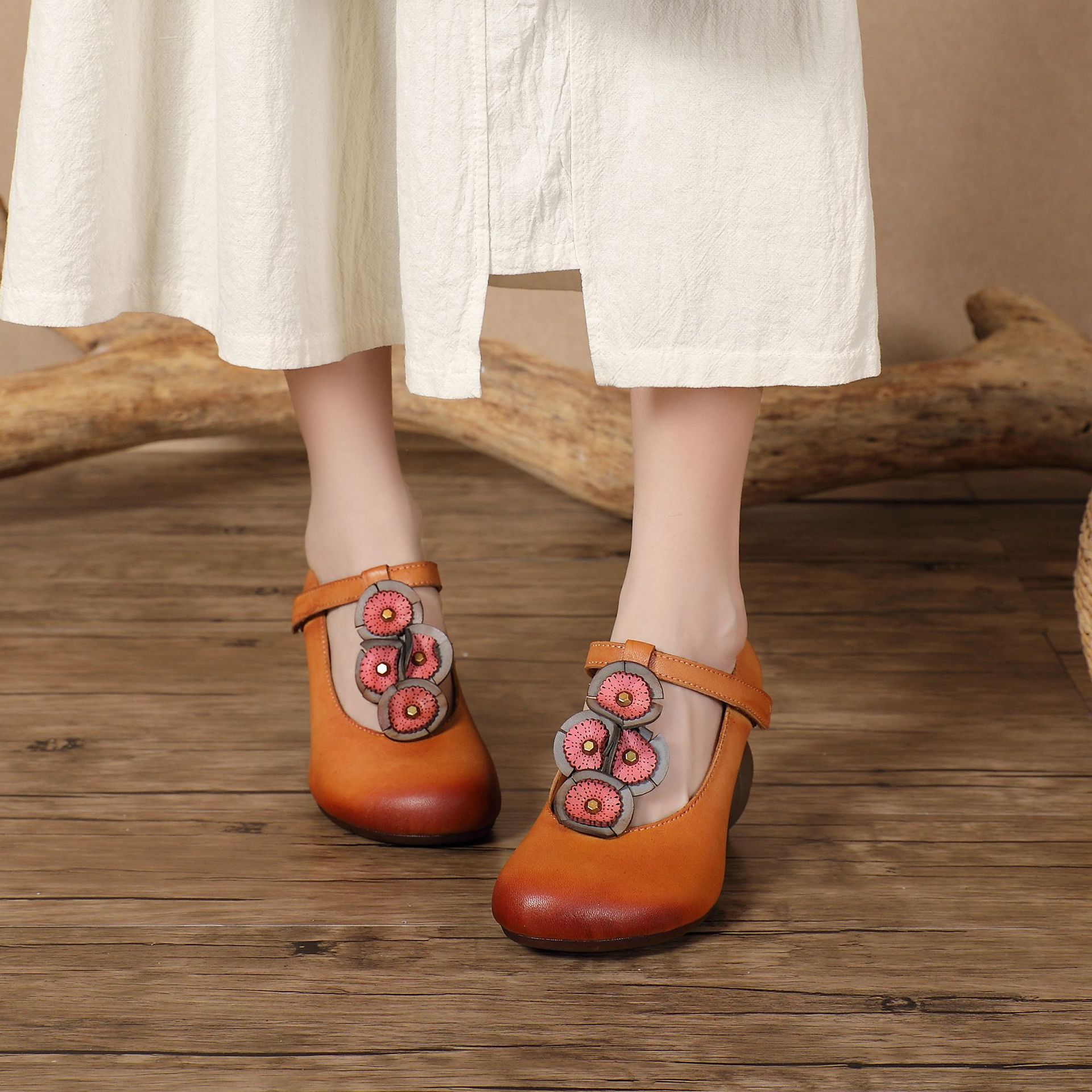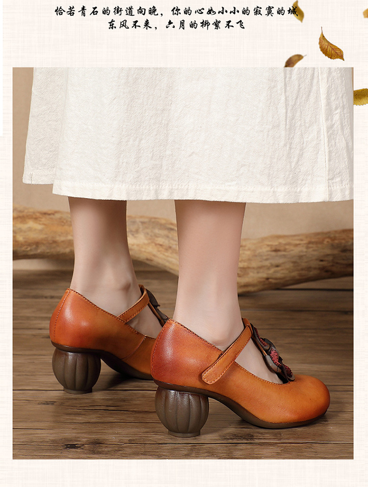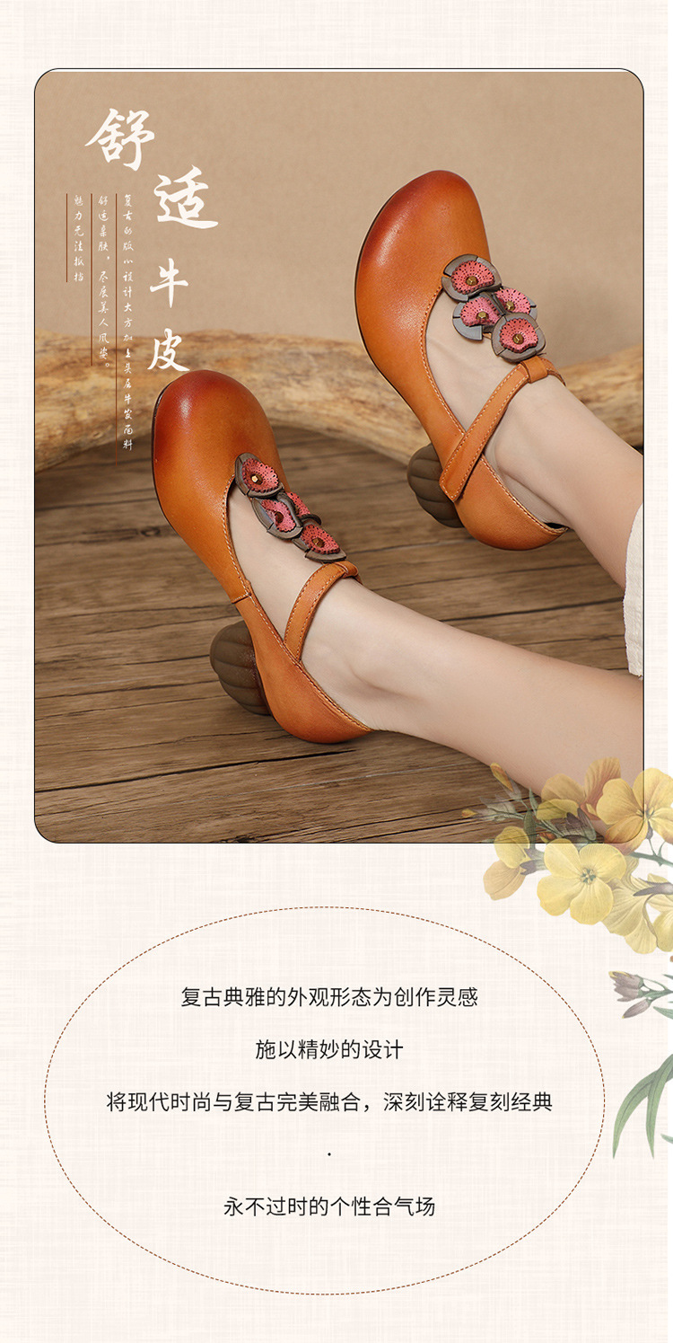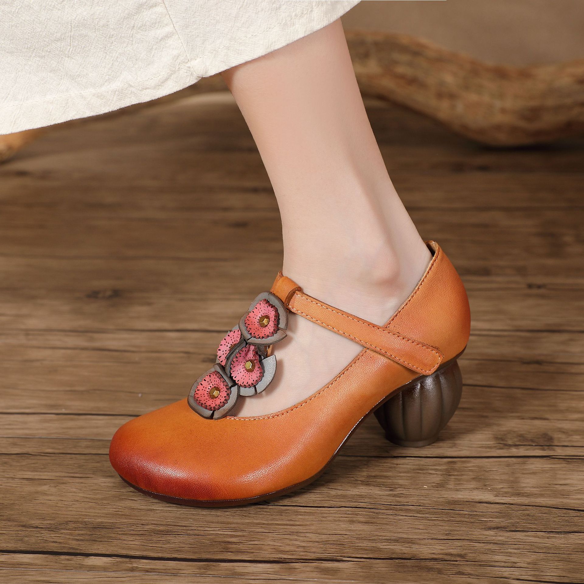 手工擦色复古女单鞋,高跟圆头花朵民族风四季女鞋BC-1983-606