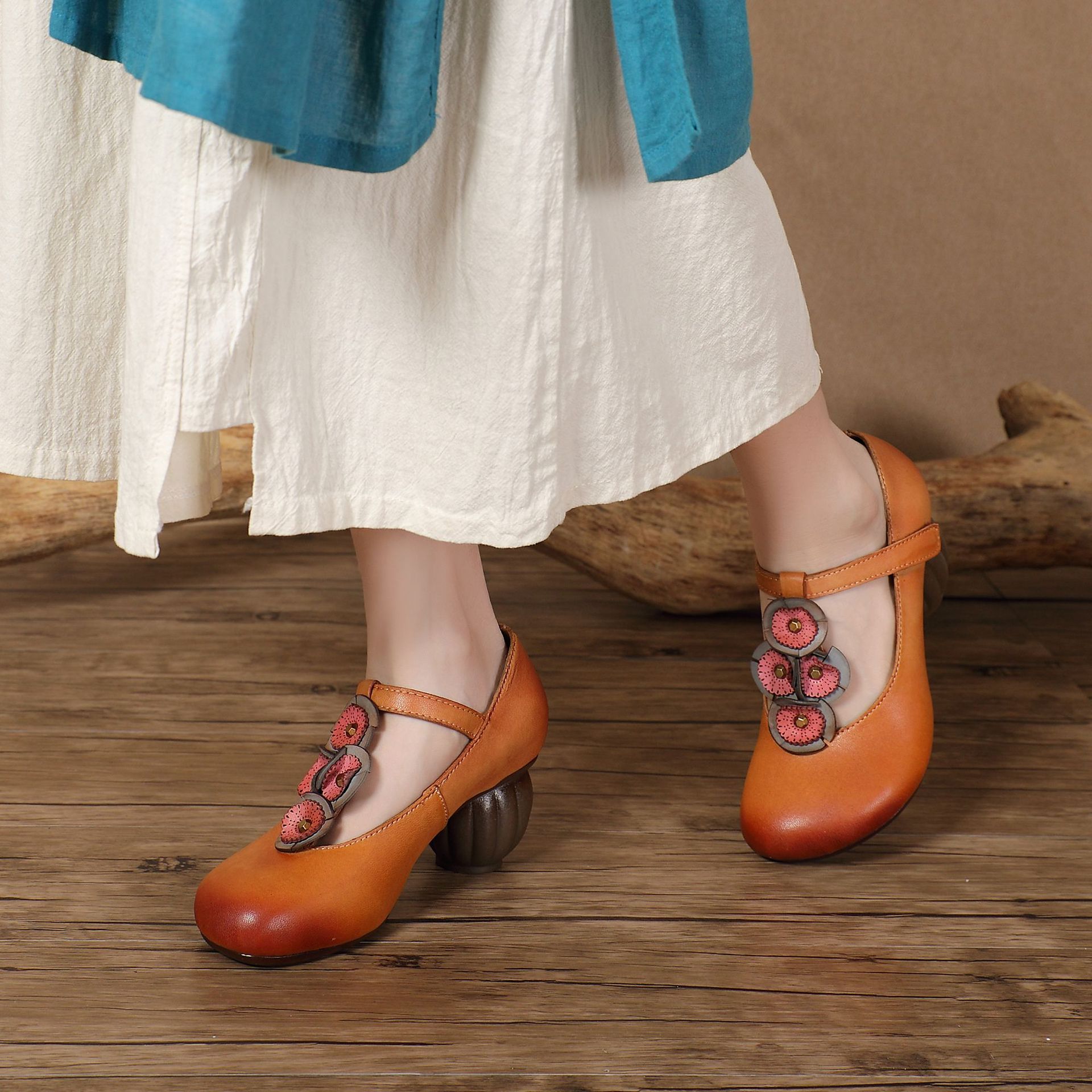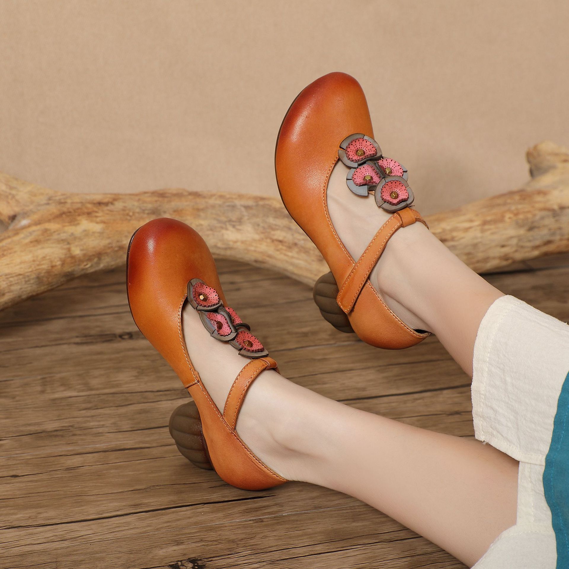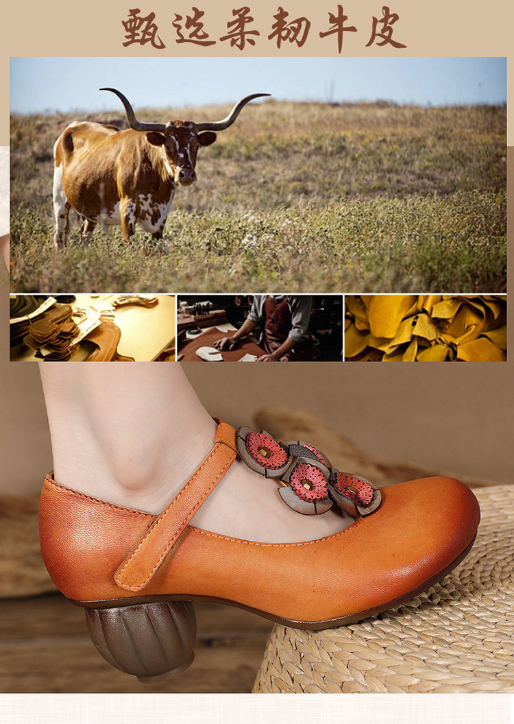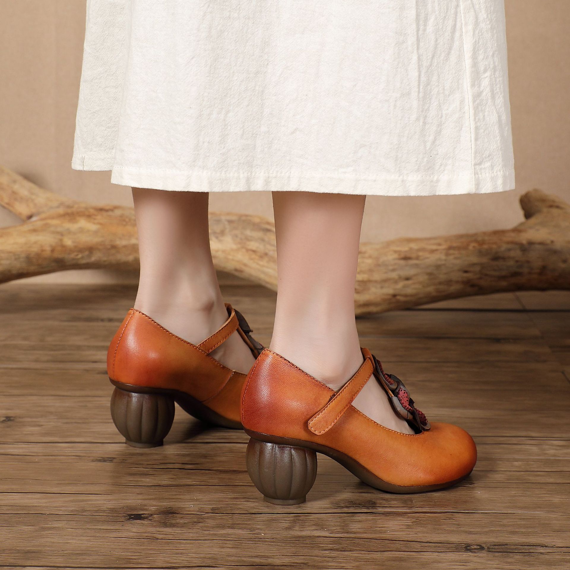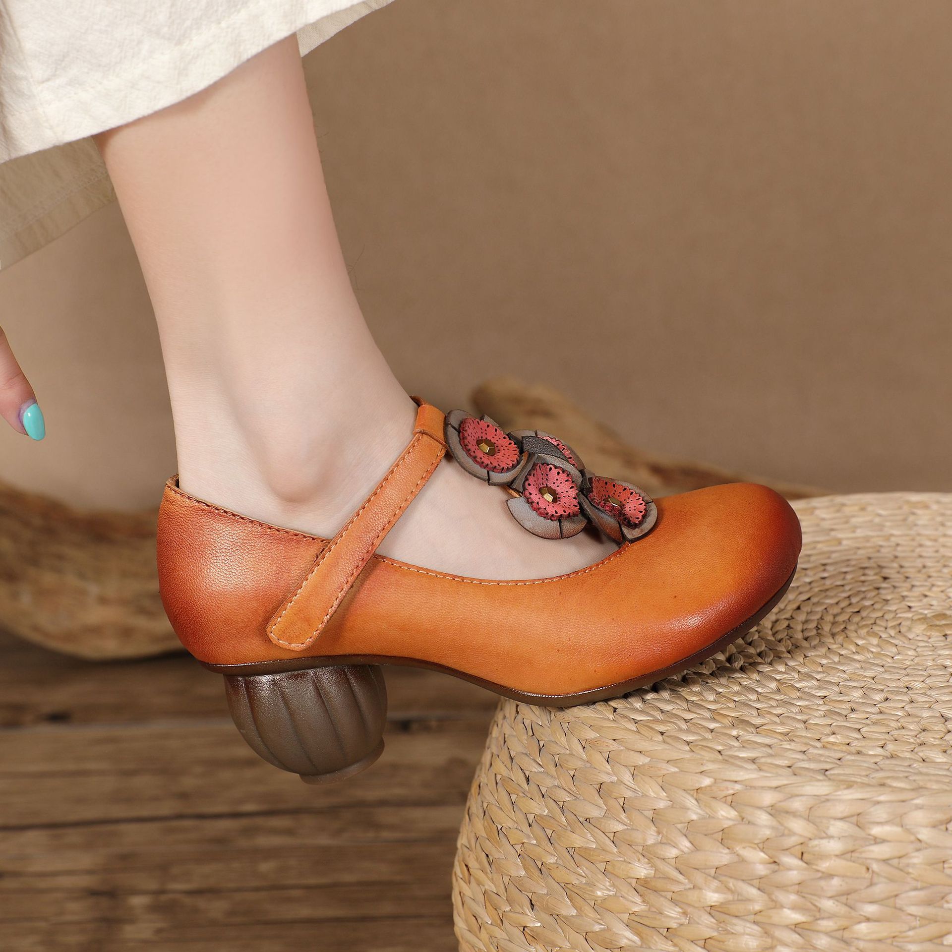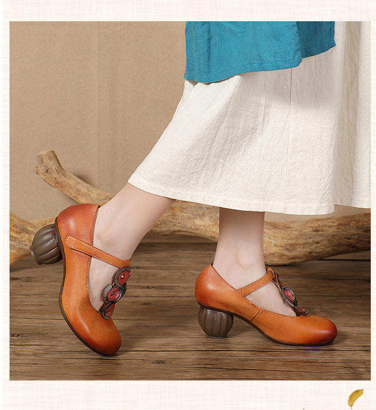 手工擦色复古女单鞋,高跟圆头花朵民族风四季女鞋BC-1983-606