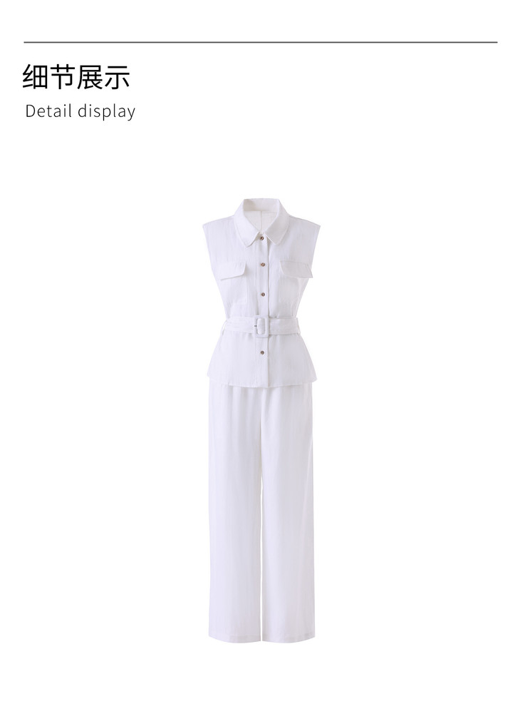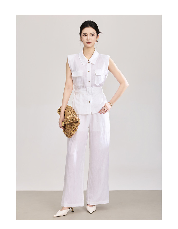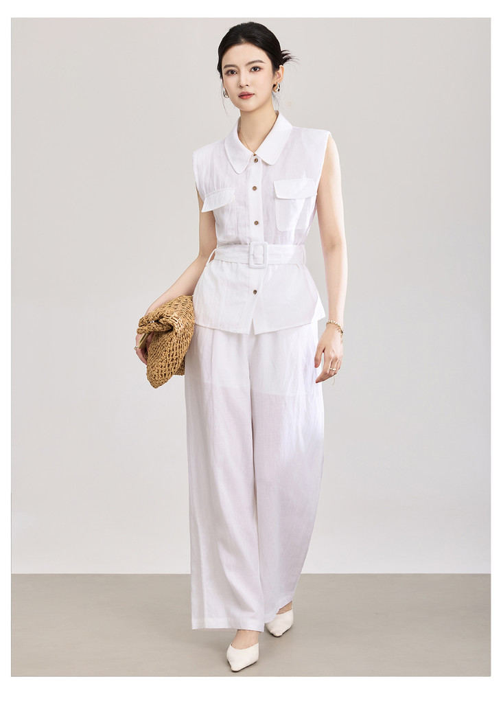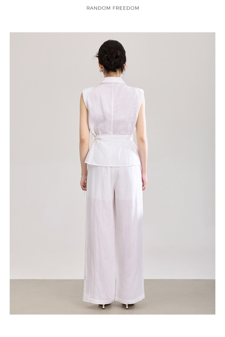 天丝亚麻老钱风腰带无袖衬衫 高腰阔腿裤套装 WLZD2603301 商品图4