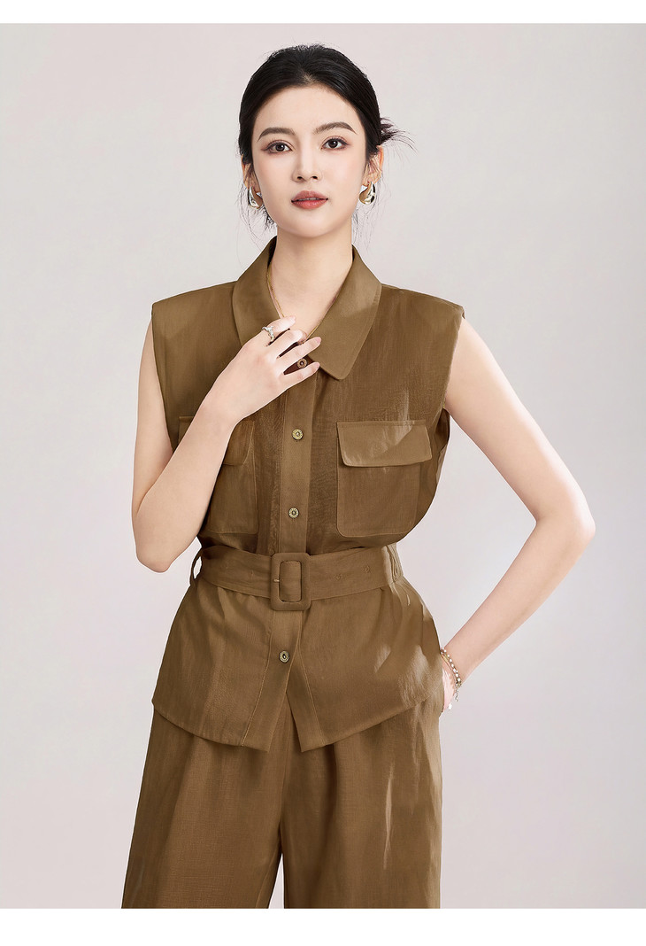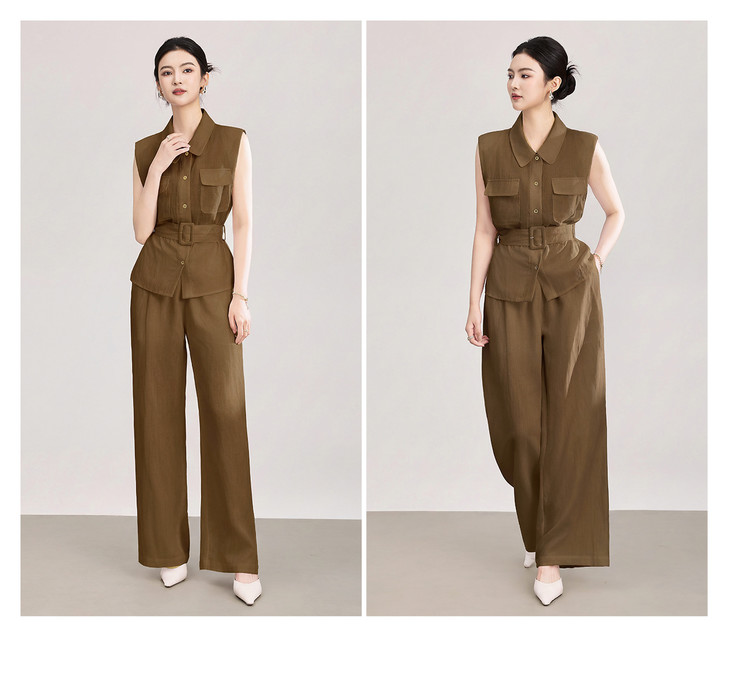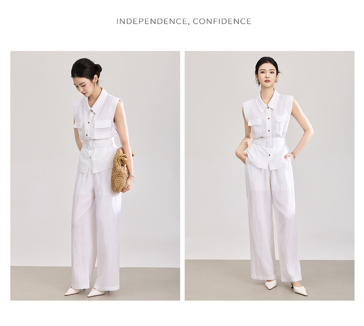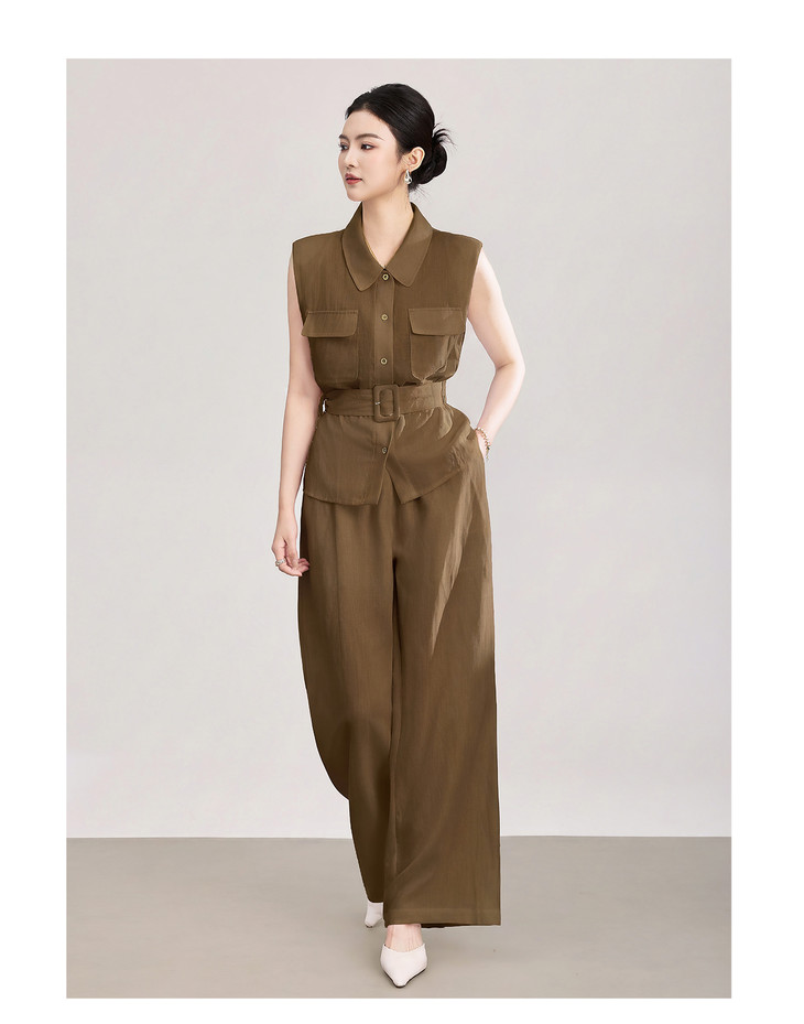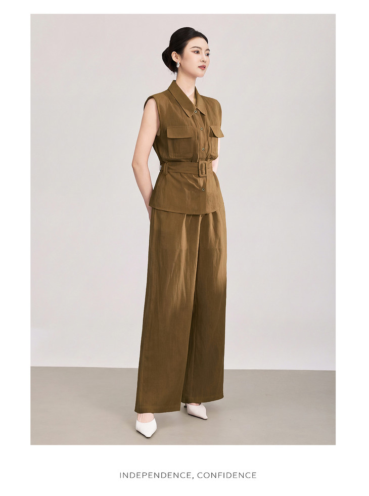 天丝亚麻老钱风腰带无袖衬衫 高腰阔腿裤套装 WLZD2603301 商品图4