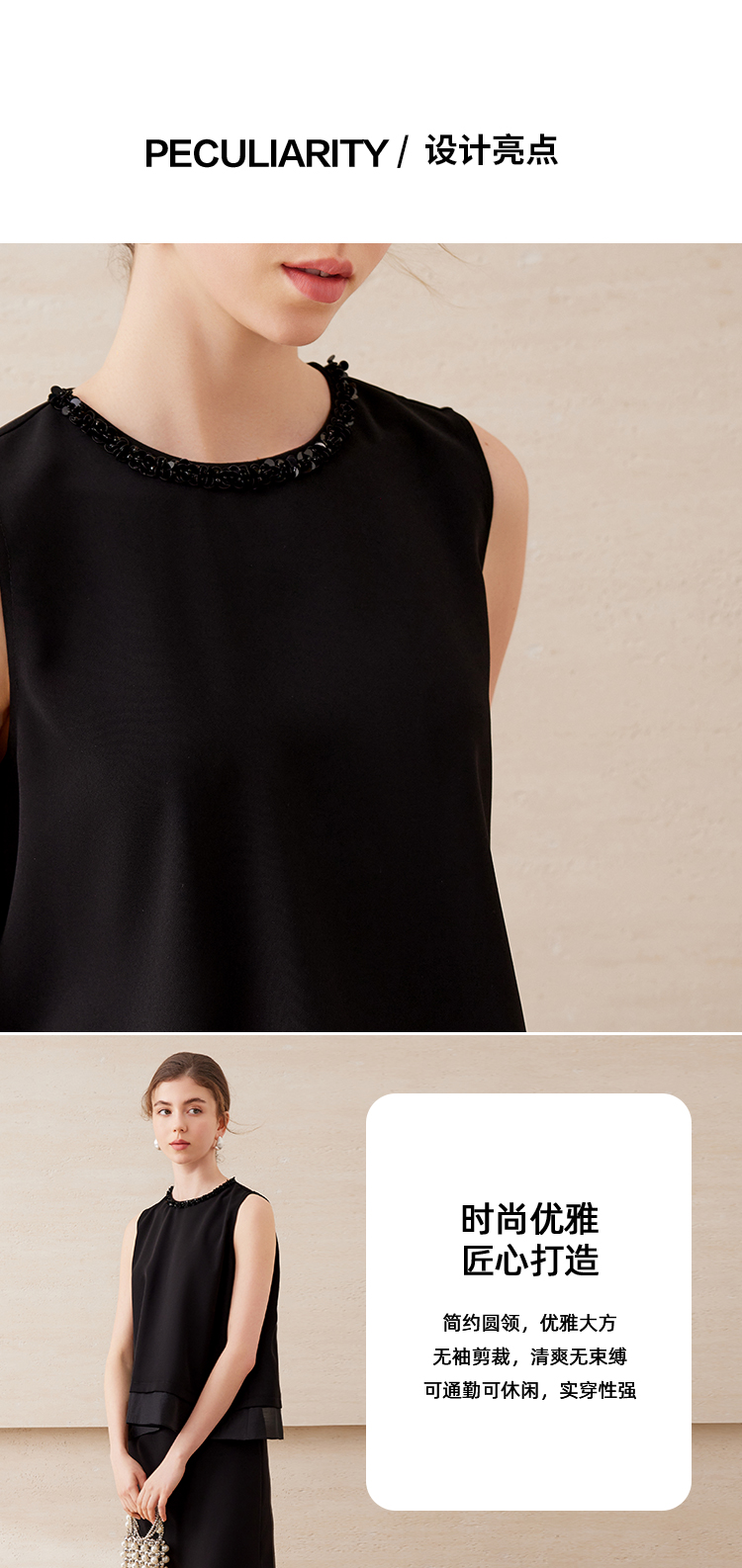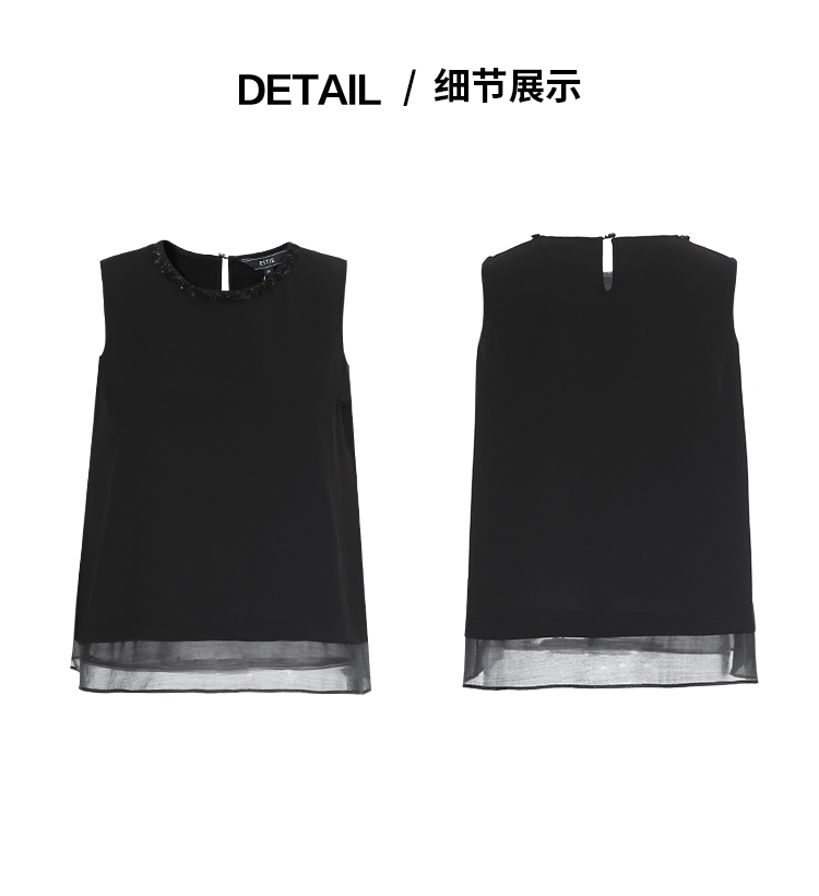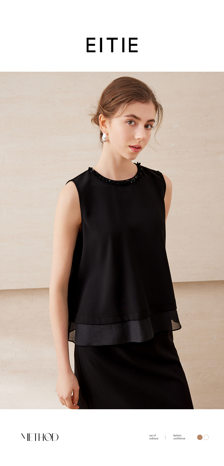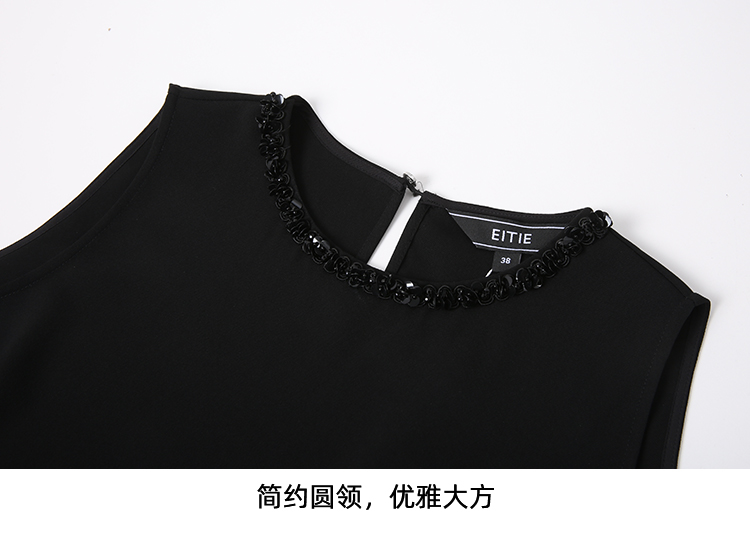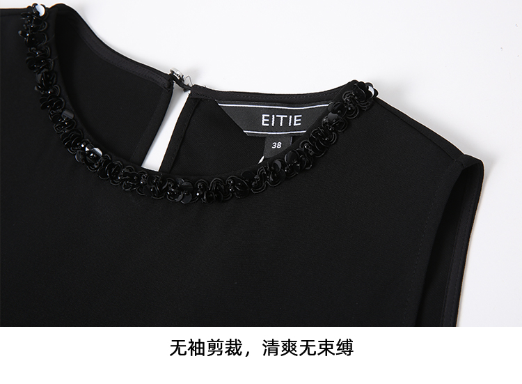 EITIE爱特爱优雅气质领口珠片宽松廓形无袖小上衣2025夏季新款B2513616