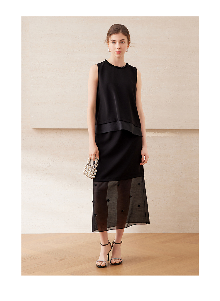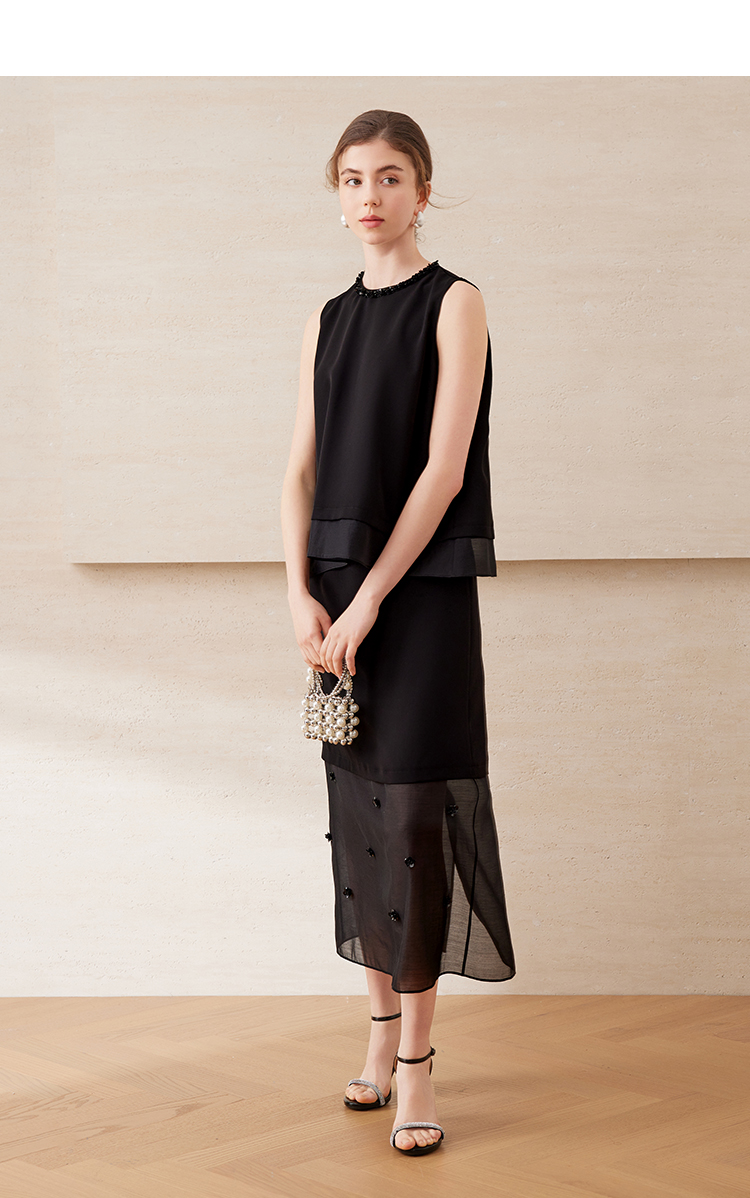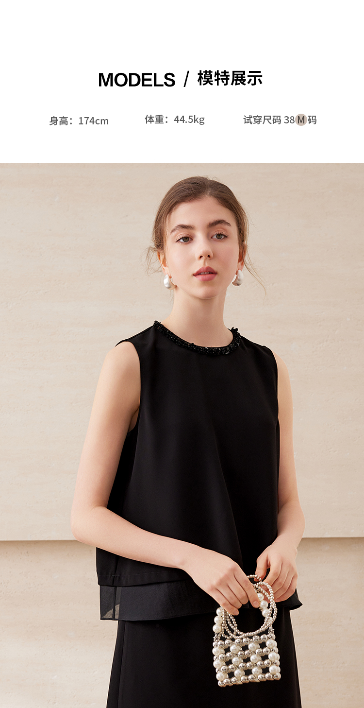 EITIE爱特爱优雅气质领口珠片宽松廓形无袖小上衣2025夏季新款B2513616