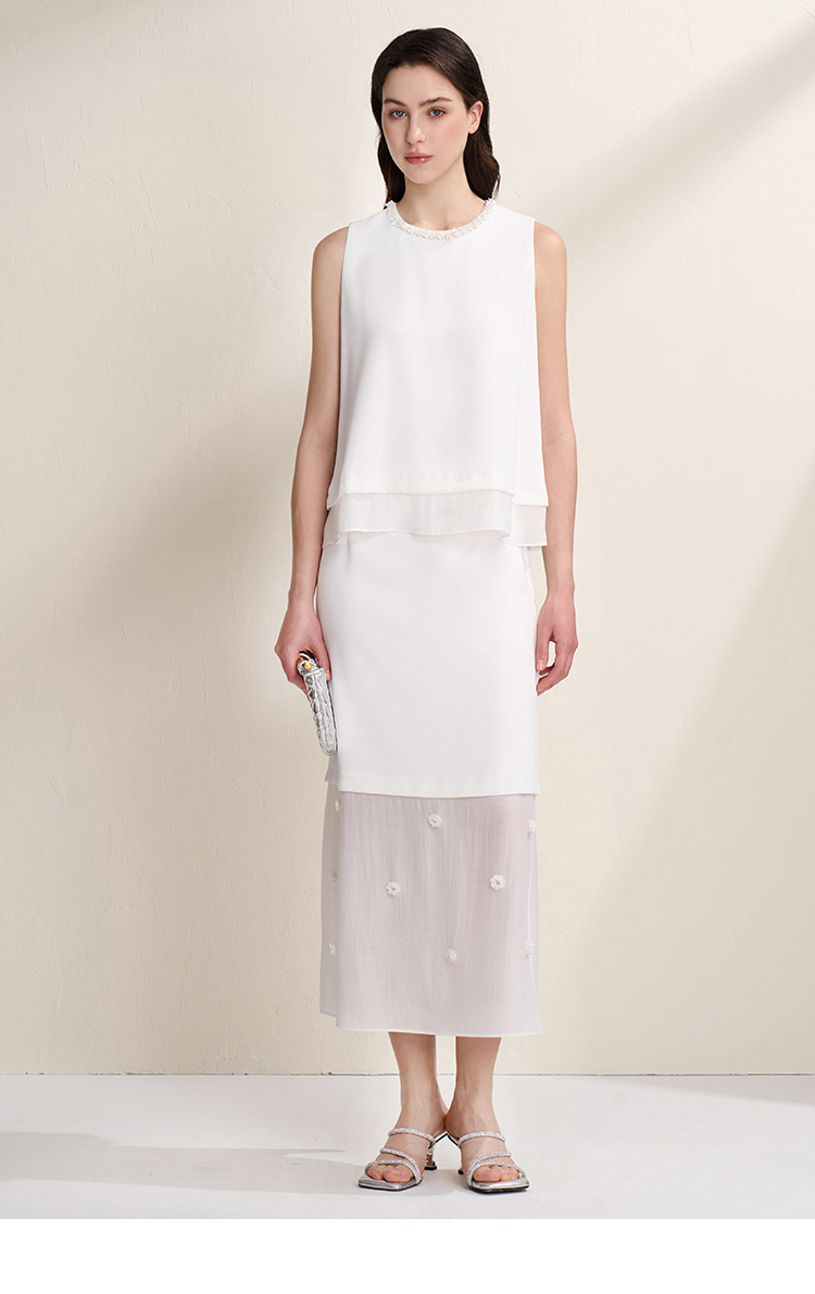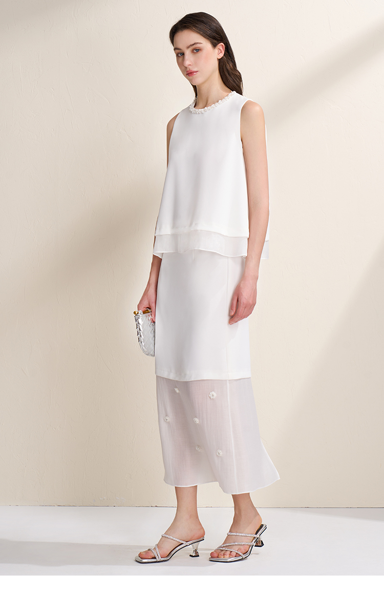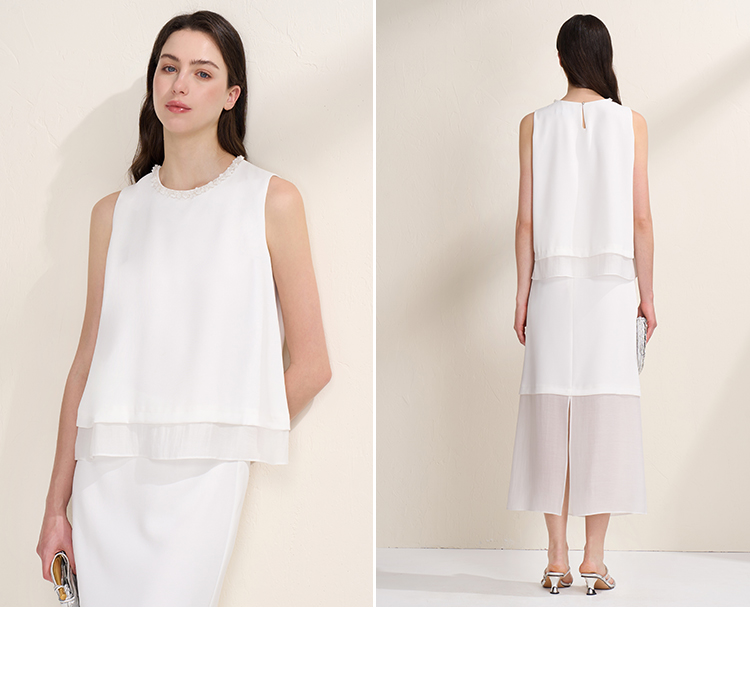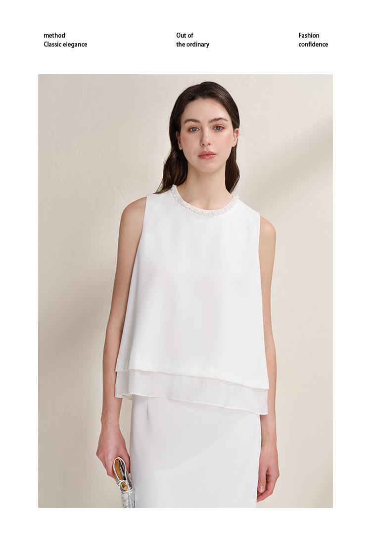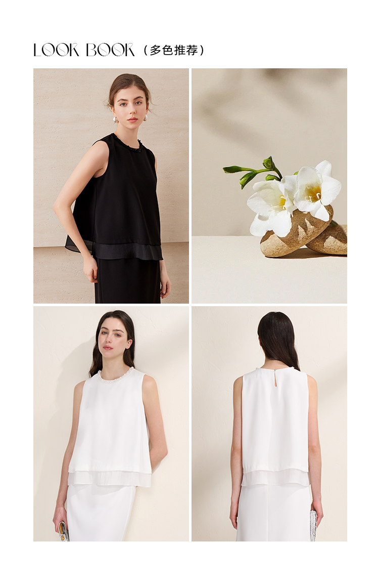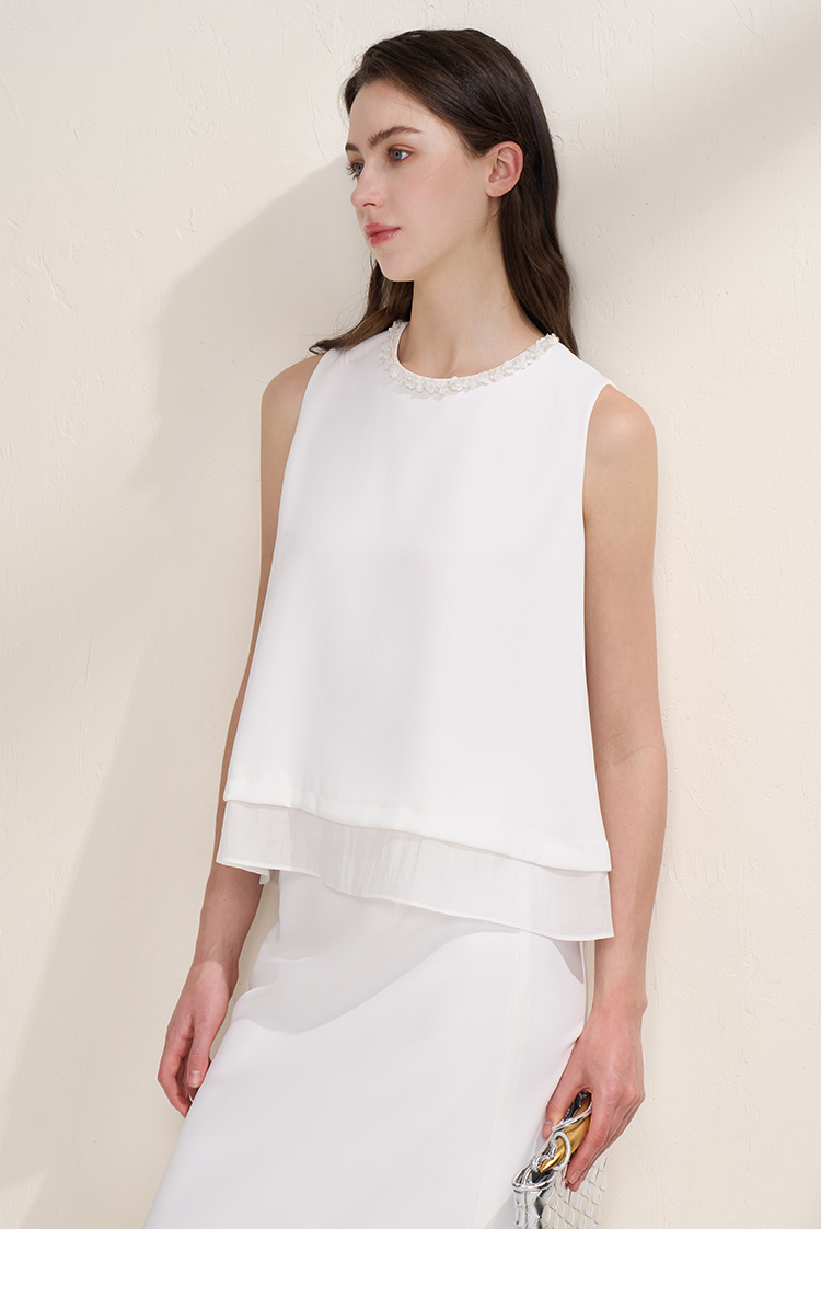 EITIE爱特爱优雅气质领口珠片宽松廓形无袖小上衣夏季新款B2513616