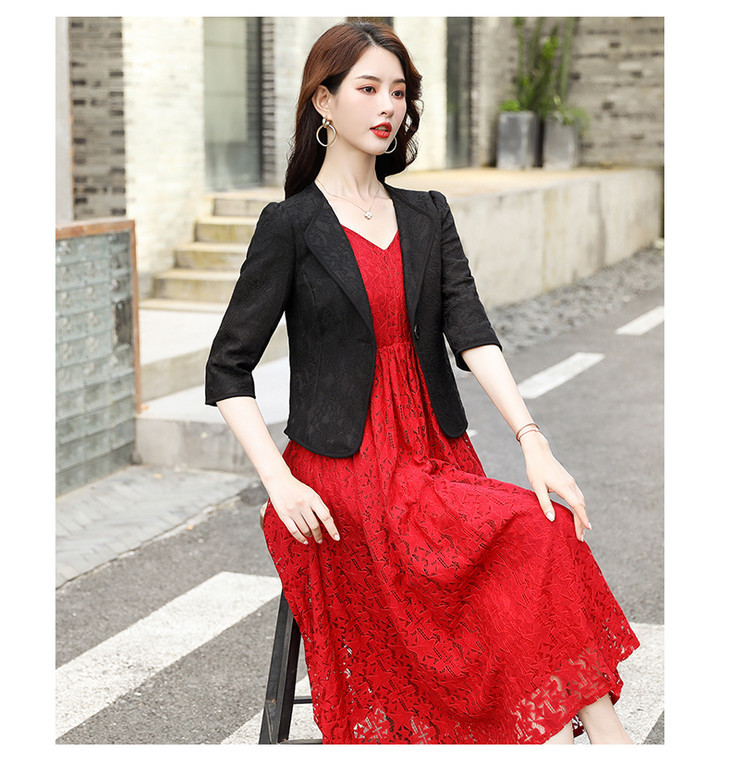 韩版百搭配旗袍裙子外搭蕾丝小西装HR-CME2015AB